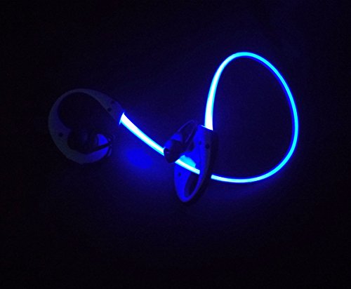 -. Feature : -Unique Luminous bluetooth headphones: Wearing this glowing headphones and running like a shinning butterfly. keeping you safe when you are running at night. Be cool, Be Seen! Be safe! / -Amazing volume and sound quality: Latest Bluetooth 4.1 easy to pair with all the smartphones, like iPhone 6/6plus/5s/4s, Samsung Galaxy S6/S5/S4/ Note 4, Sony, HTC etc; CVC(Clear Voice Capture) noise cancellation technology delivers astonishing acoustics, gives you wonderful sound experience. / -Sweat-free, Moisture-free, Water-resistant: Sweat roof. Ideal use as Gym headphones, sports Headphones, running Headphones. So weather your jogging, hiking, cycling working out, exercising or just hanging out listening to your favorite music and watching videos you wont be disappointed. / -Ergonomic design and comfortable to wear: Come with 3 pairs of soft ear muffs of different size to fit different ears, ultra comfortable to wear. / -Hours of music in between charges: Built-in rechargeable li-polymer battery enable ultra long stand by and play time. You can turn on the turn off the light any time as you like.