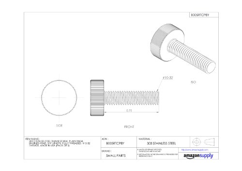 303 Stainless Steel Thumb Screw, Plain Finish, Knurled Head, 3/4" Length, Fully Threaded, #10-32 UNF Threads, Made in US (Pack of 5)