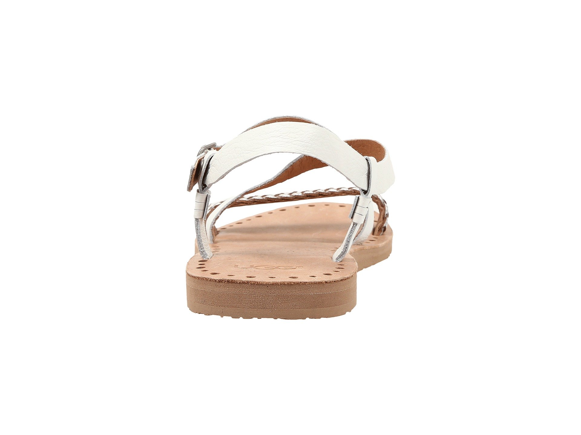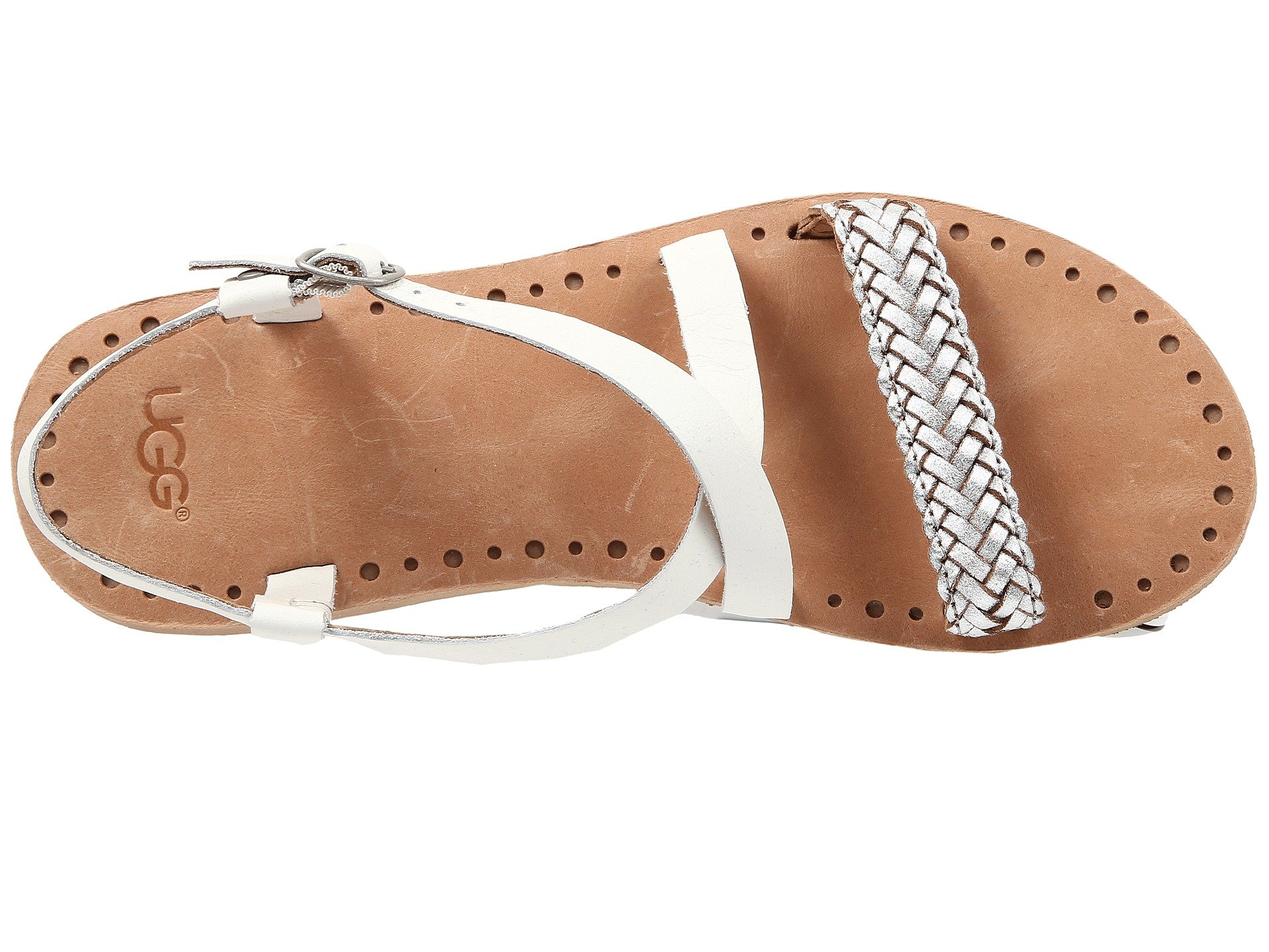 | Product Information SKU: #8466198This item is subject to quantity limitations.Take a walk in the comfortable Jordyne sandals!Open-toe sandals in a leather upper features a front braided strap.High-shine criss-cross straps. Laser cut topsole reveals midsole color. Heat embossed UGG? logo on heel. Custom designed Treadlite by UGG™ with RMAT technology outsole, EVA, or rubber with patent-protected UGG? logo tread.Imported. Product measurements were taken using size 8, width B - Medium. Please note that measurements may vary by size.Weight of footwear is based on a single item, not a pair.Measurements: Heel Height: 1?2 in Weight: 5 oz |