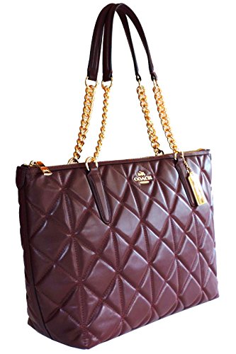 -. Title : Quilted Ava Chain Tote Oxblood Handbag Leather Purse