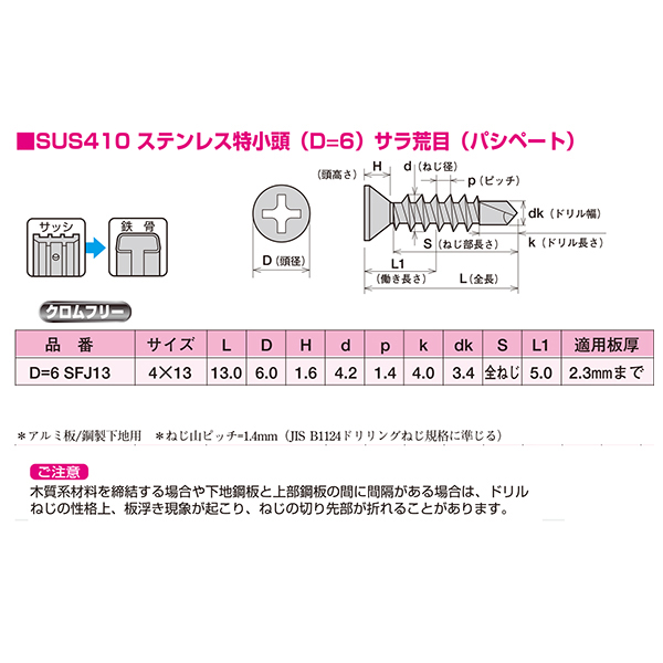 ●スペック:特小頭(D=6) サラ荒目(パシペート) 4.0×13mm