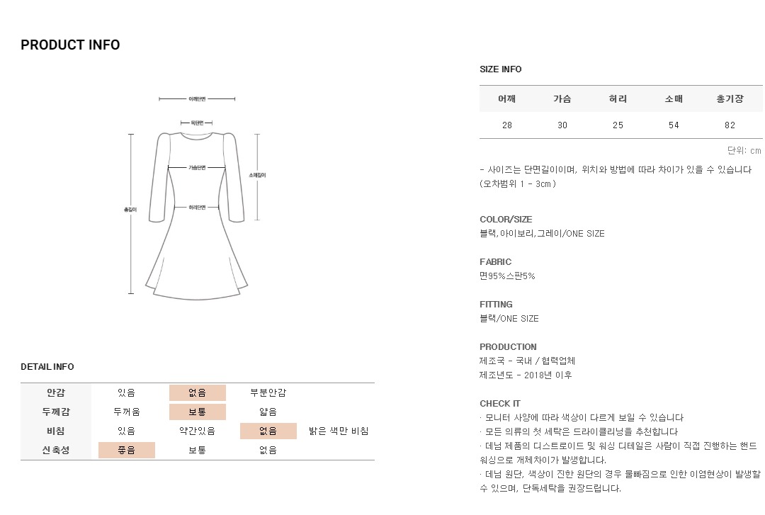 신축성 좋고 쫀쫀한 면혼방의 원단으로 착용감을 높여드렸고