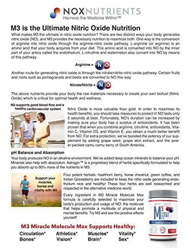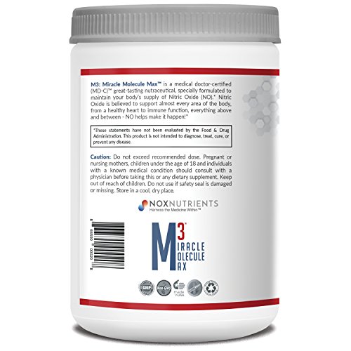 SCIENTIFICALLY FORMULATED FOR MAXIMUM QUALITY: M3 Miracle Molecule Max is medical doctor certified (MD-C) ™ and has been reviewed for safety, effectiveness, properly dosed and pharmacokinetics. Made in the USA: Nox Nutrients supplements are FDA approved and GMP compliant