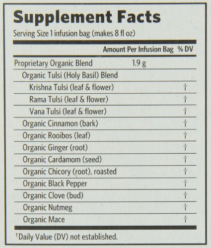 -. Feature : Made with Tulsi, "queen of the herbs", a traditional Indian medicinal herb / Stress relieving, Soothing and relaxing / Abundant in antioxidants / Uplifts mood / Caffeine and gluten free