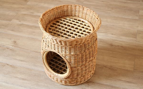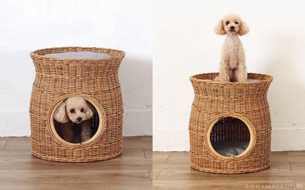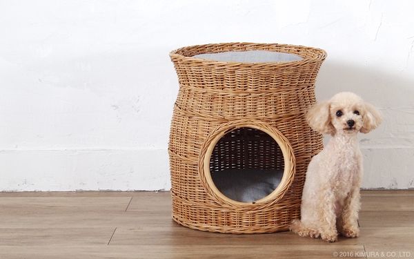 ●材料に皮付のラタンを使用して自然の風合いを味わえるペットハウス。