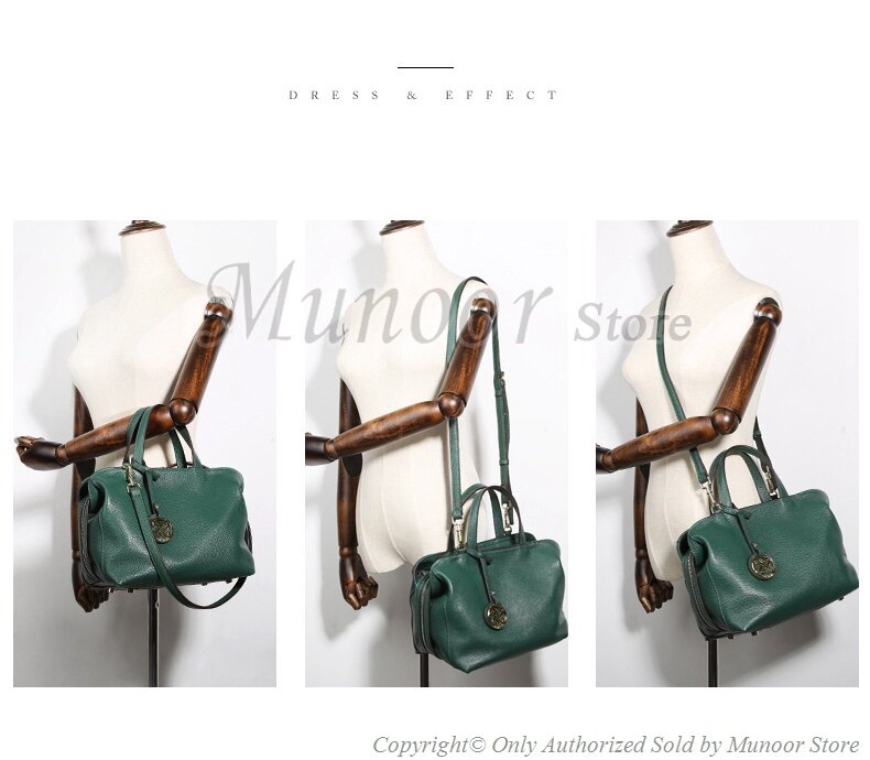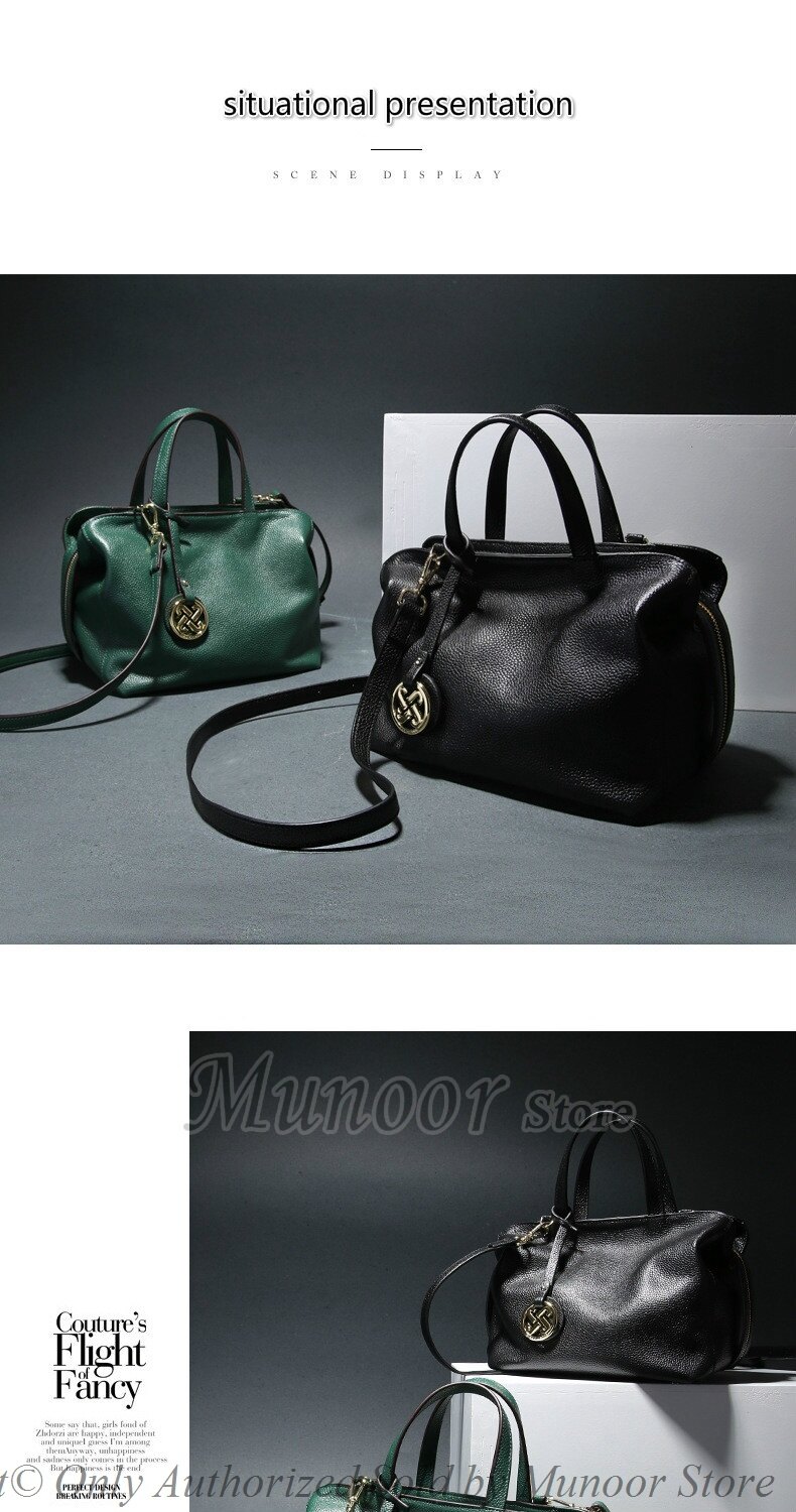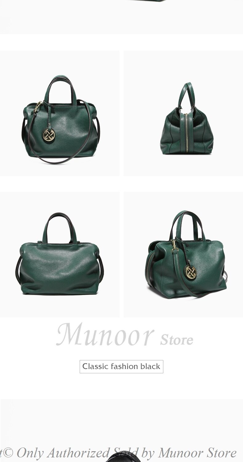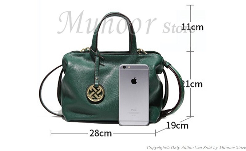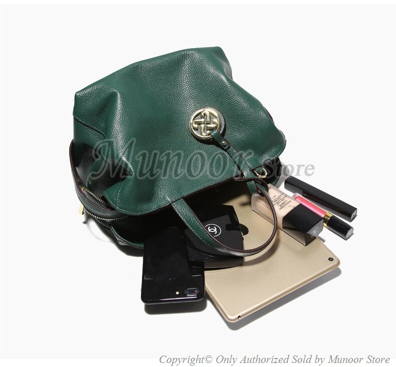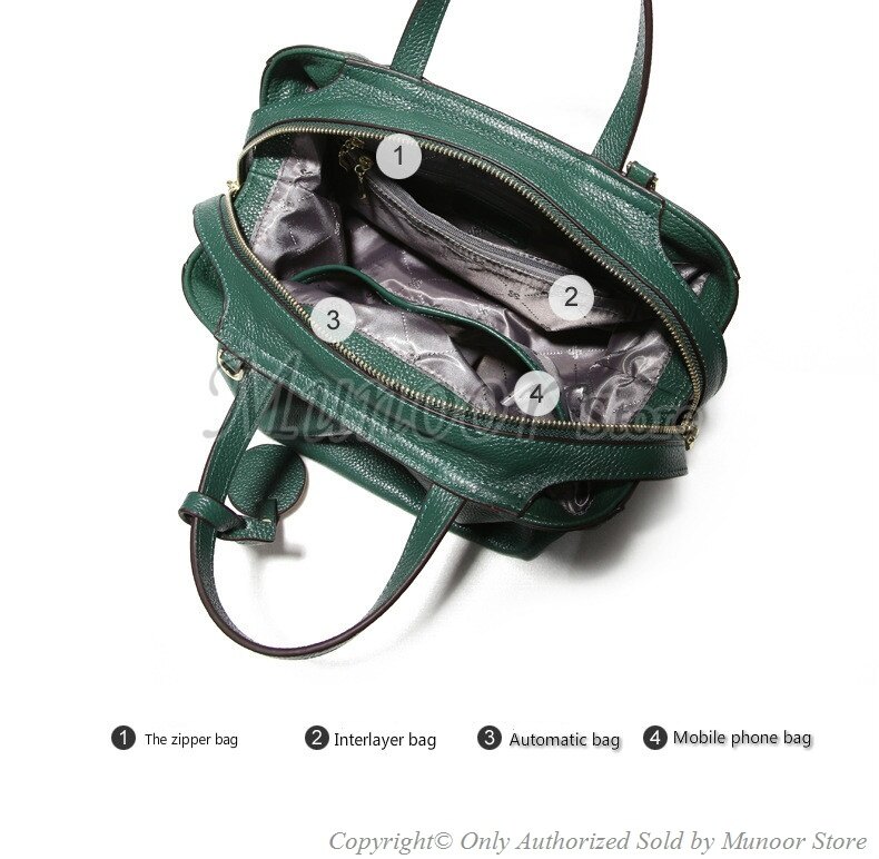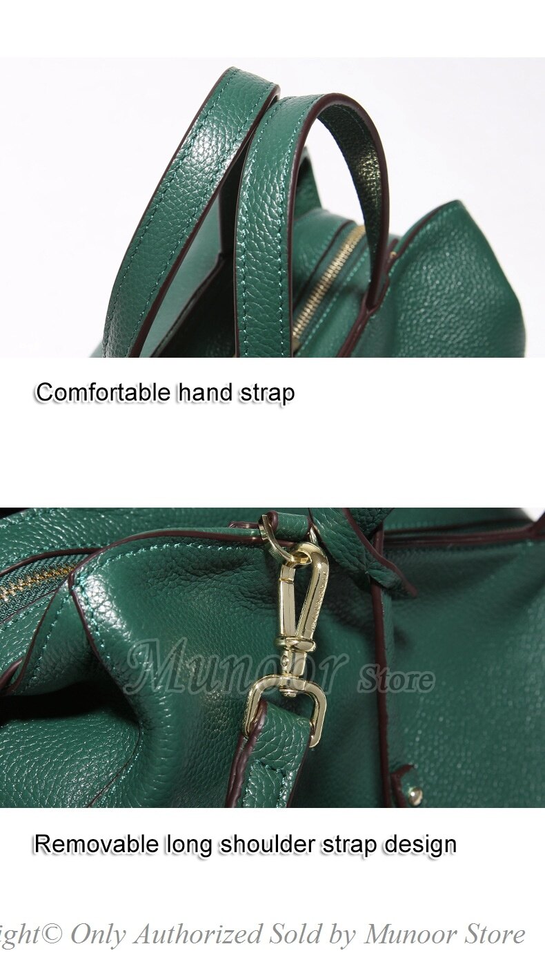 This multifunctional tote bag is made by high quality genuine cow leather, with polyester as lining. It may have leather aroma when first use, you just need to put it into ventilate place for few hours. It can hold your wallet,umbrella, iPad and also your phone etc. You can hold it at your hand or hang it at your shoulder.