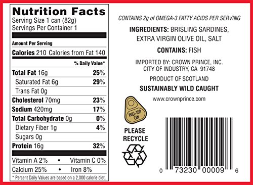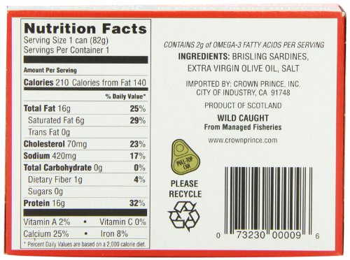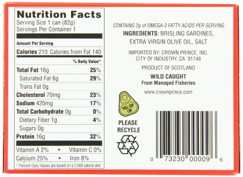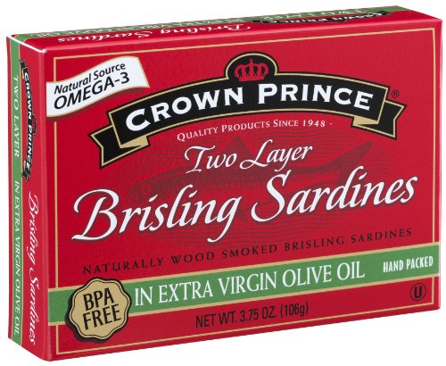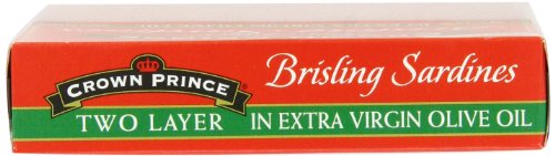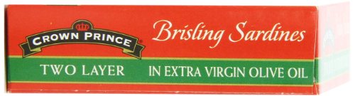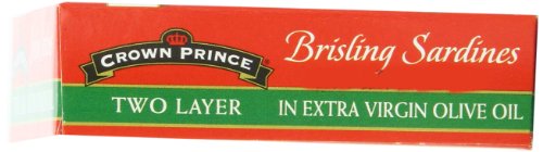 Crown Prince Two Layer Brisling Sardines in Extra Virgin Olive Oil, 3.75-Ounce Cans (Pack of 12)