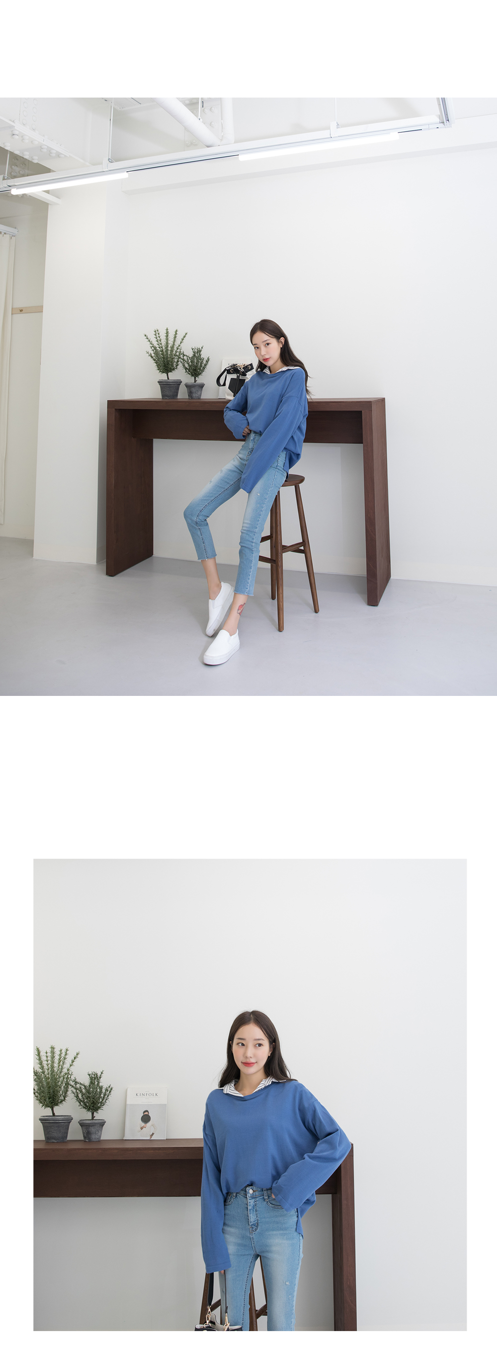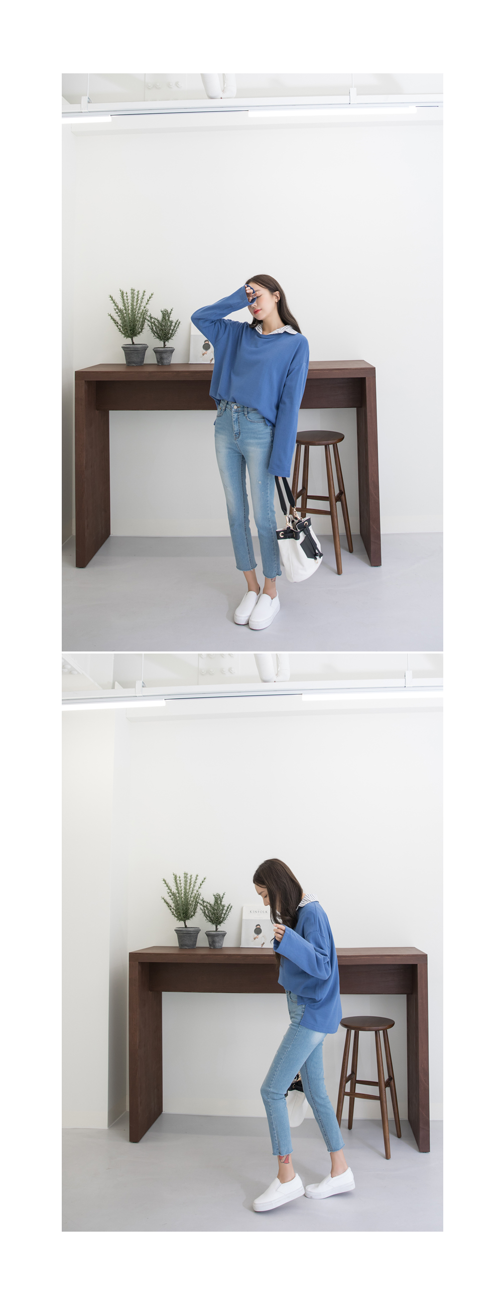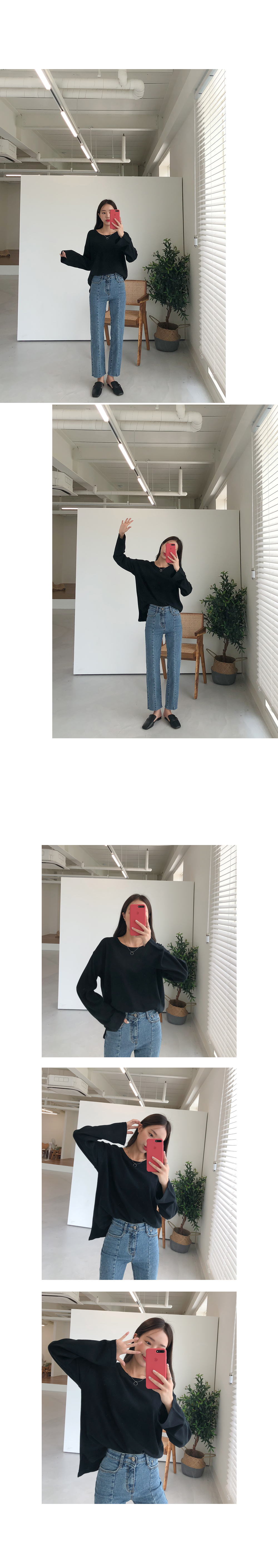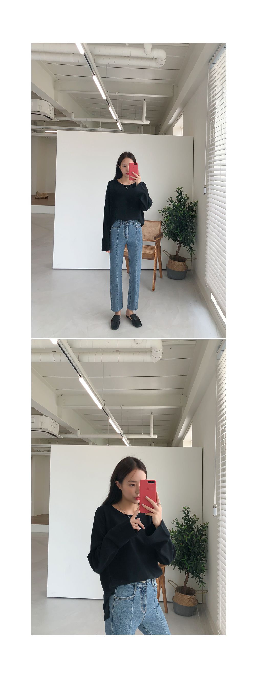 베이직한 디자인에 와이드한 소매디자인과 밑단 언발기장이 포인트를 주는 아이구요~