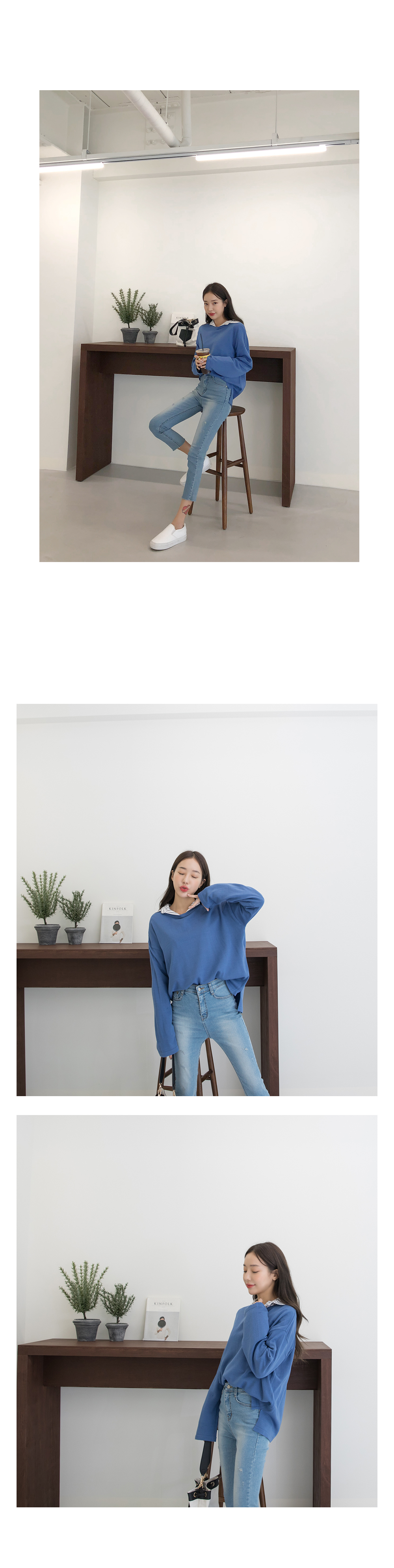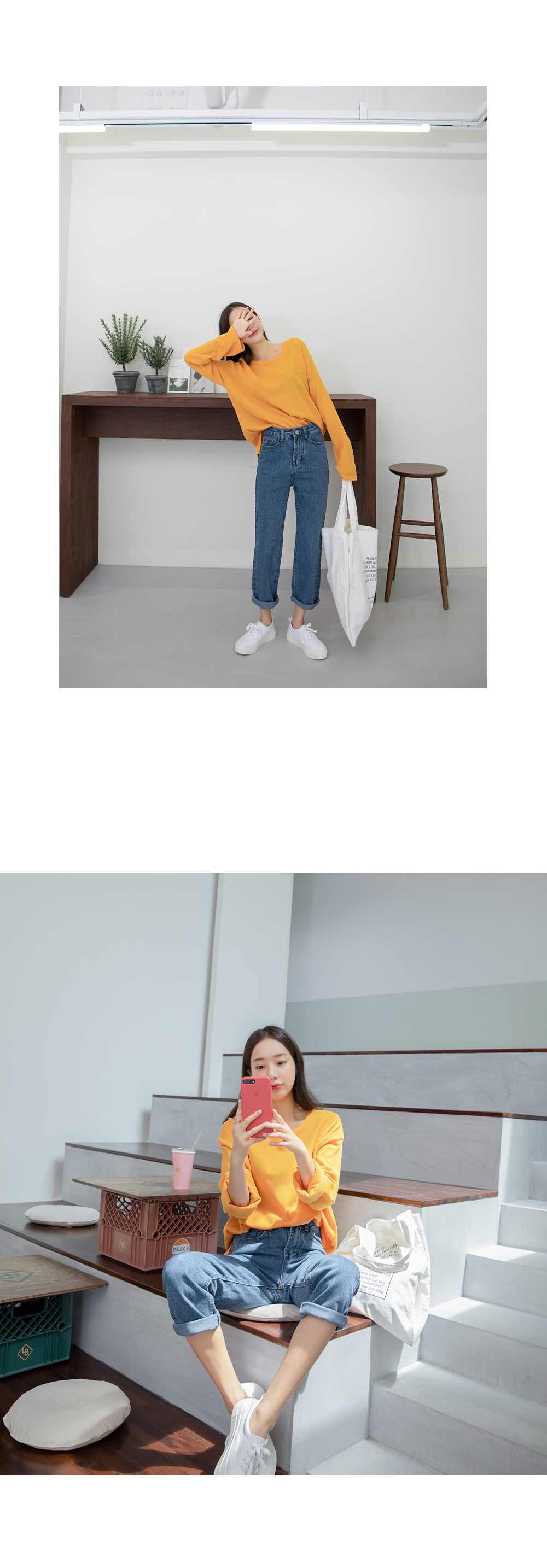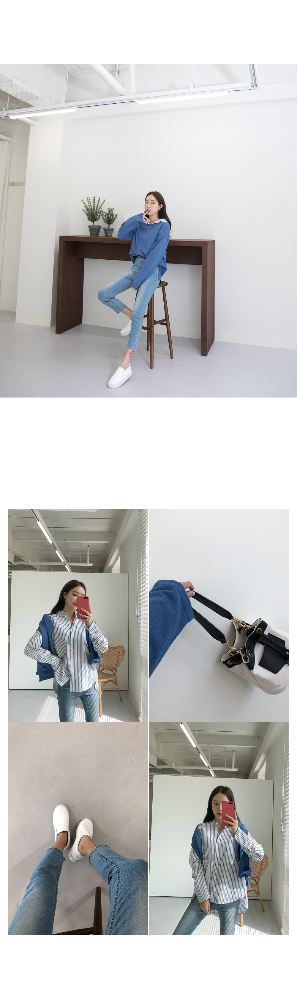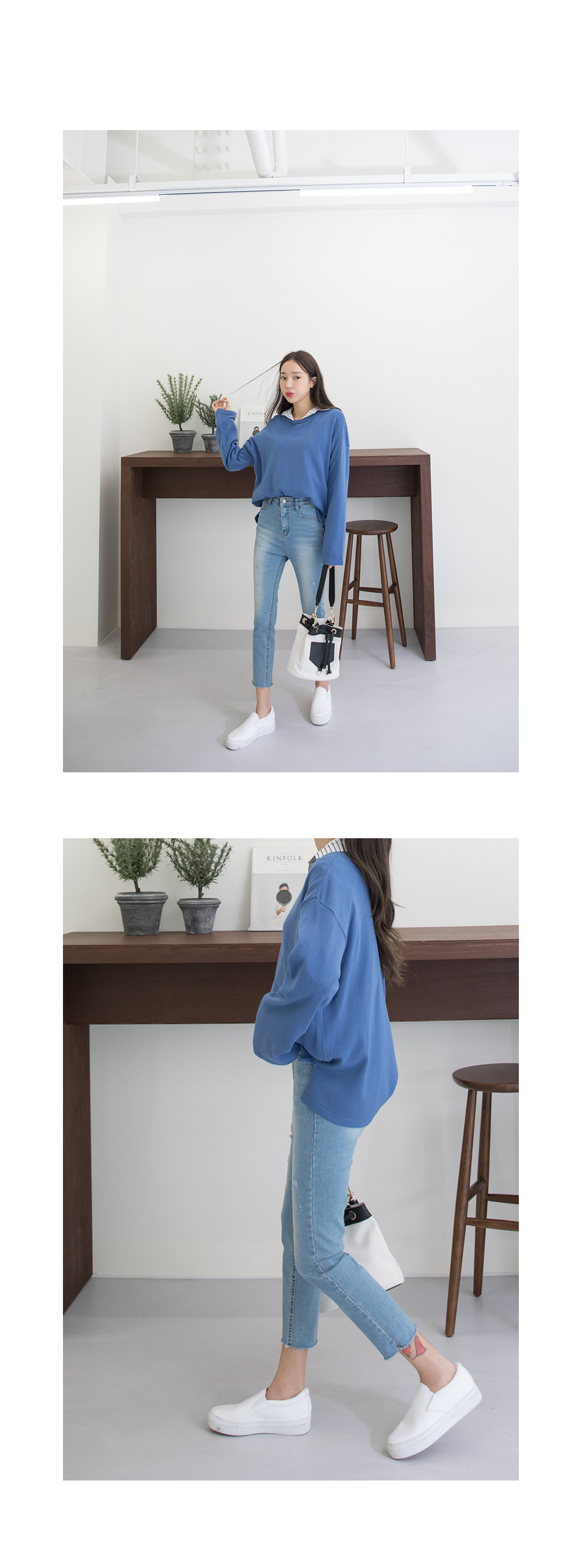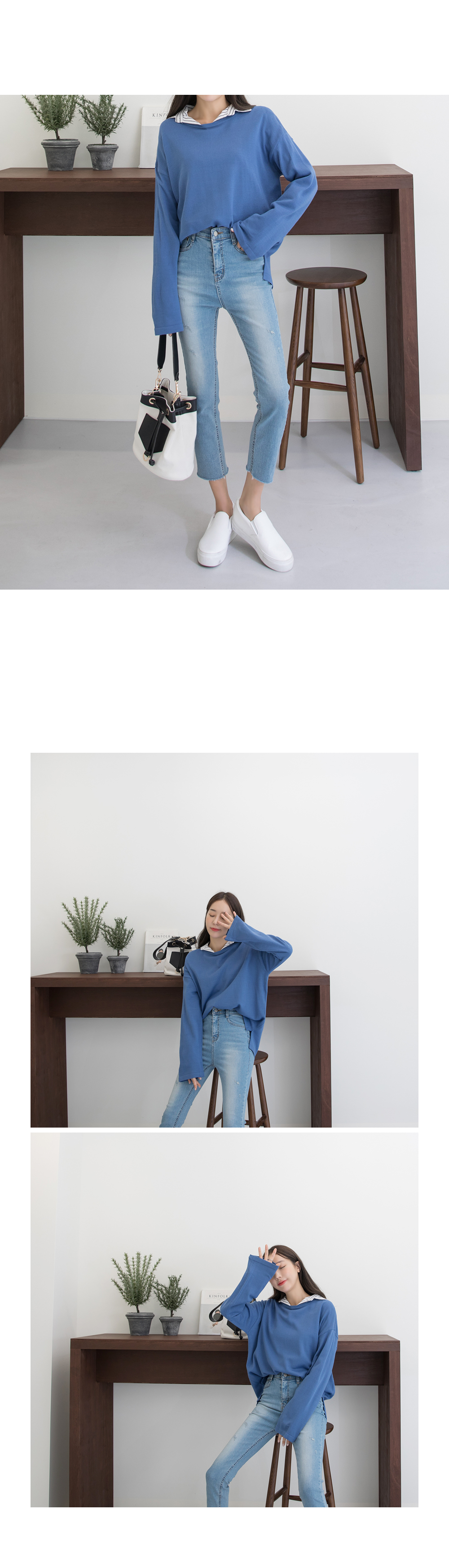 베이직한 디자인에 와이드한 소매디자인과 밑단 언발기장이 포인트를 주는 아이구요~