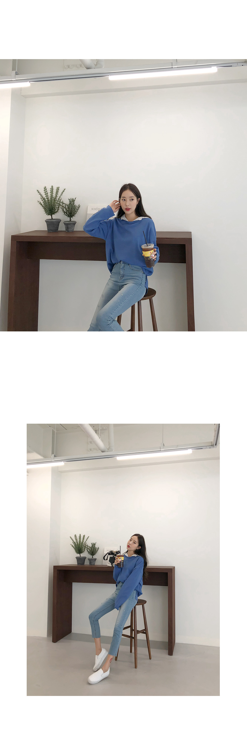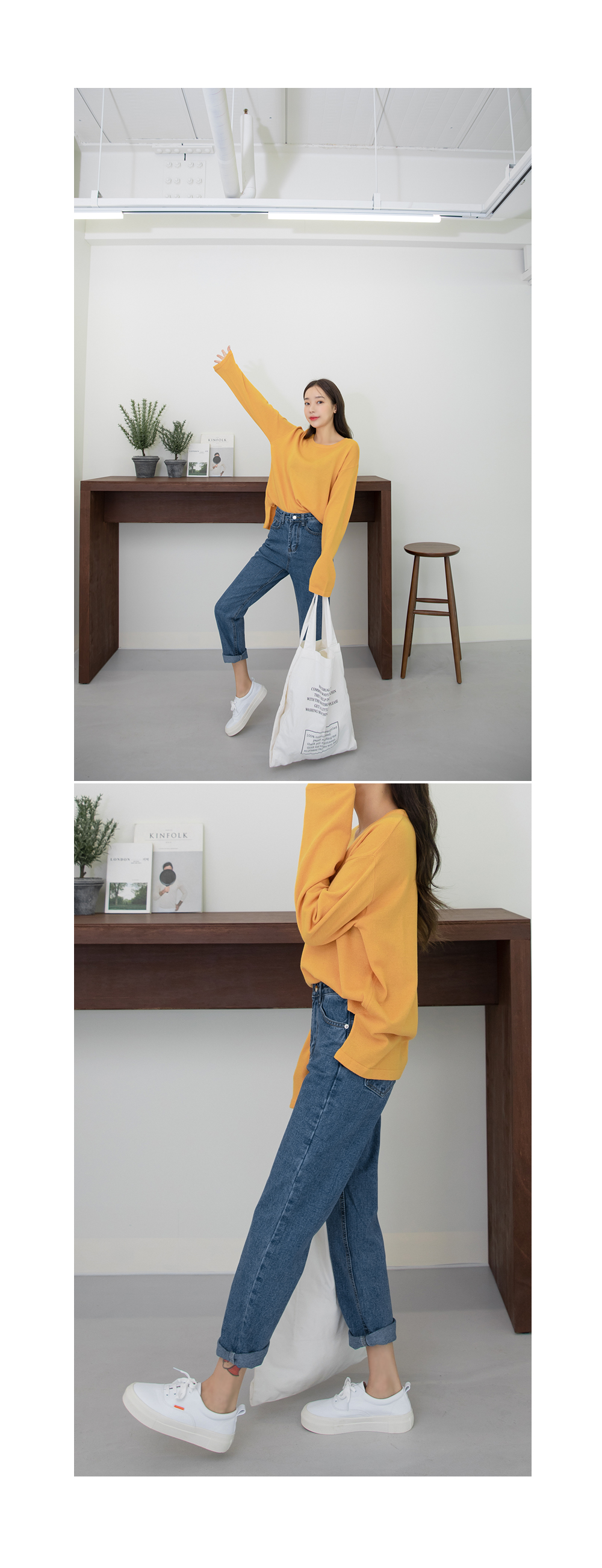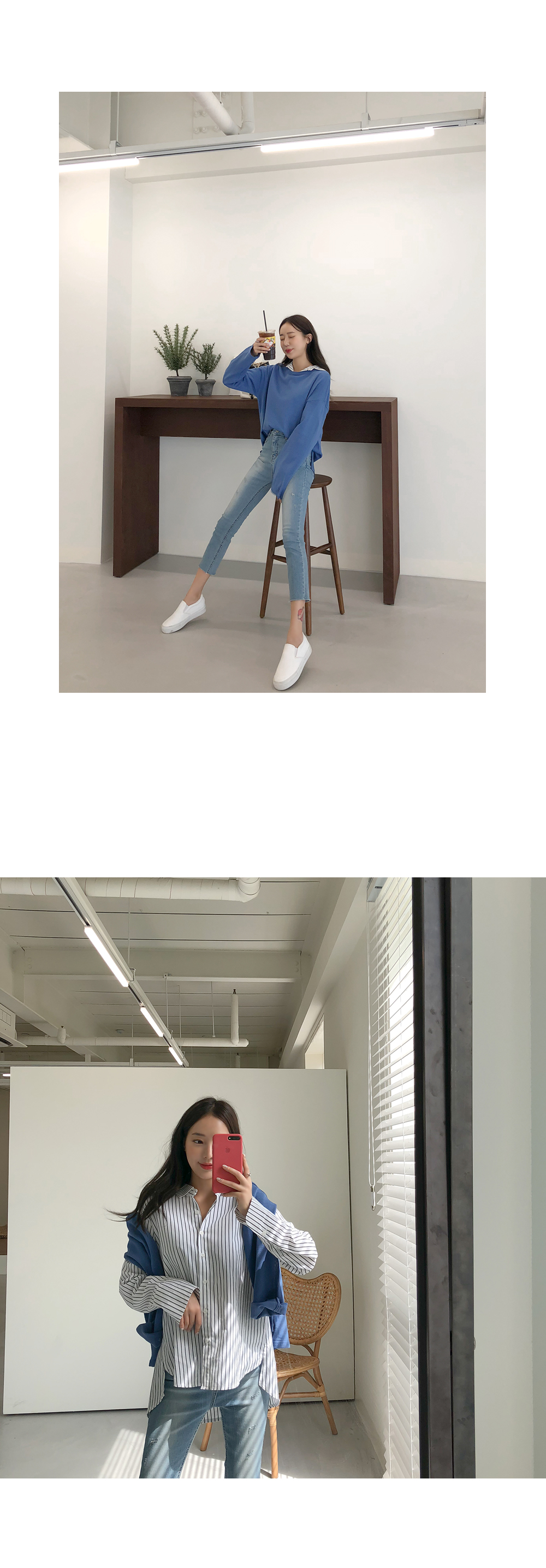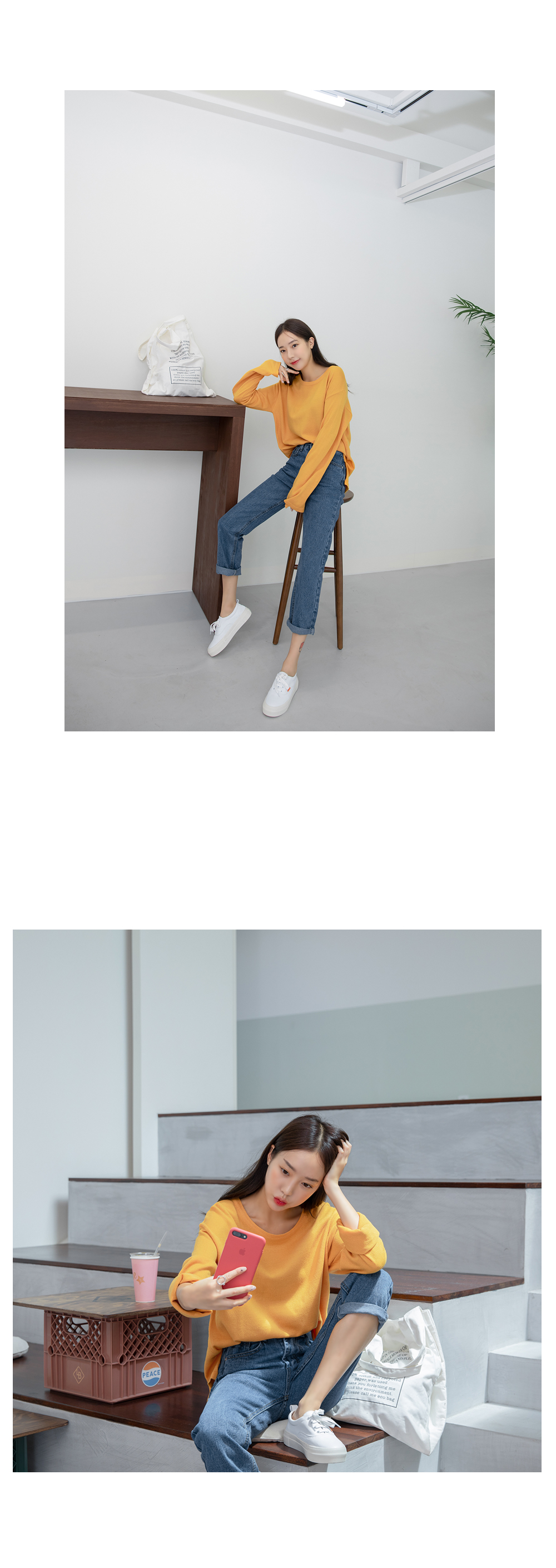 베이직한 디자인에 와이드한 소매디자인과 밑단 언발기장이 포인트를 주는 아이구요~