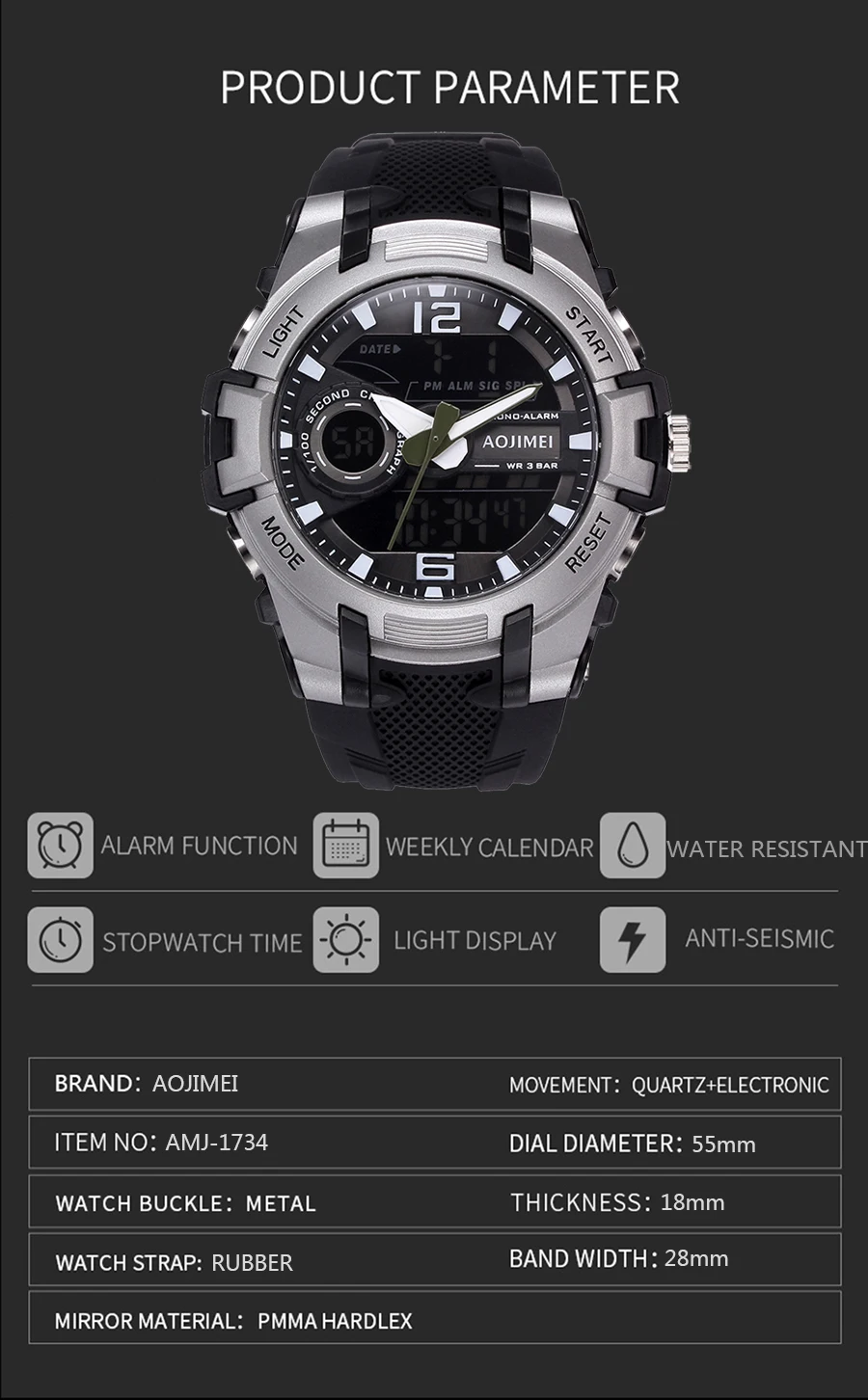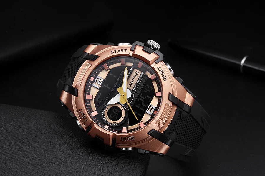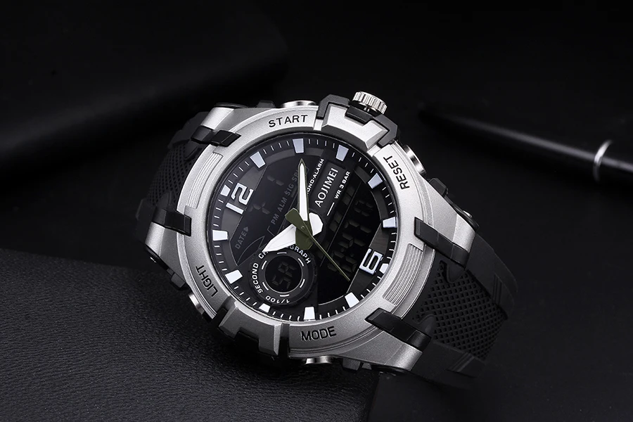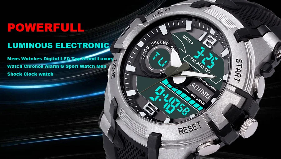 Feature:Complete Calendar,Shock Resistant,Luminous Hands,LED display,Anti-magnetic,Auto Date,Week Display,Water Resistant,Back Light,Chronograph,Multiple Time Zone,Alarm