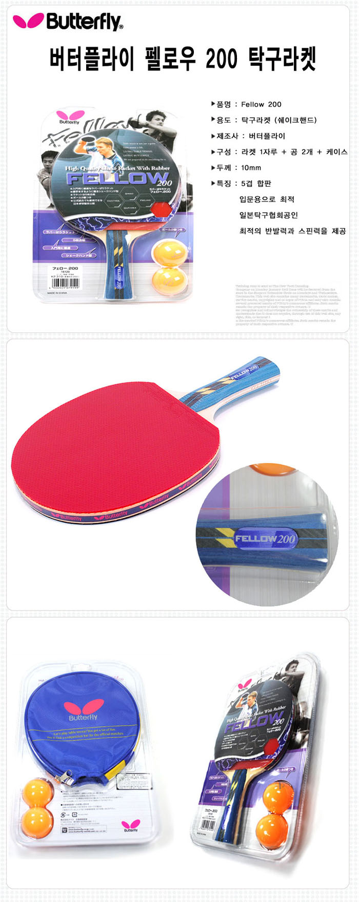 BUTTERFLY Fellow 200 Ping Pong Racket Table Tennis Shake hand Type for Beginner
