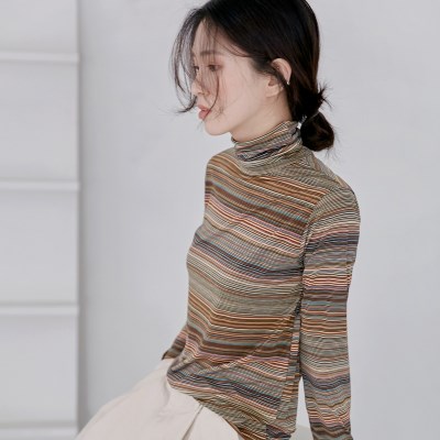 얇은 간격의 스트라이프 패턴이 돋보이는 폴라 탑 입니다.