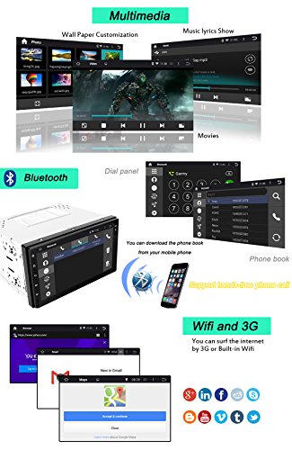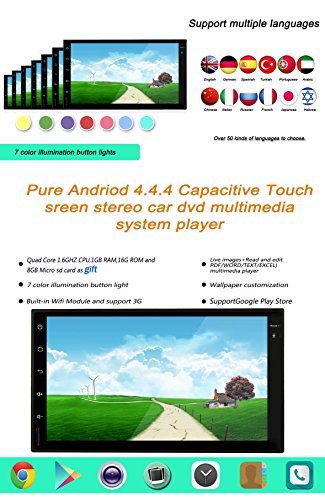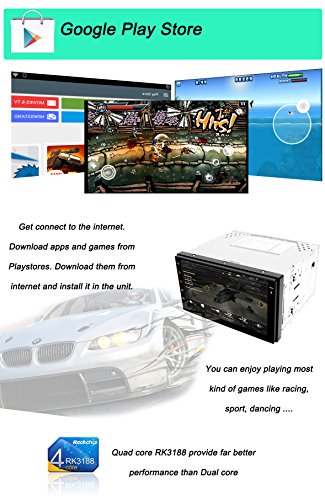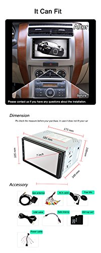 - Feature : The universal in-dash vehicle gps units can fit dash size at 183mm*105mm, for those larger than this shall buy dash kit to make it perfect fit / Loaded with pure Android 4.4.4 Kitkat, RK3188 1.6GHz Cortex A9 Quad Core CPU, Samsung DDR3 1GB RAM and 16GB flash memory, Mali 400MP GPU; Adopts Capacitive Digital 1024*600 HD screen, multi-touch, 175 viewing angle, day and night readable / Built-in GPS navigation; Bulit-in Bluetooth for hands-free calling and phone music playing; Support OBD2, AV-IN reverse camera, Digital Video Recorder, Steeing Wheel Control; Built-in WiFi, 3G and hotspot / Full touch screen, NO DVD; Support iphone 4s 5 5c 5s 6 Airplay, Android phone Mirror link; 30 stations of analog AM/FM RDS radio; Support iPhone audio input, Play music or video via SD card or USB; Support Dual Zone function; Support 1080P video and 3D game; Support subwoofer and EQ / Free external and Free map in a Free 8GB map card; 12 months warranty for quality-related issues;
