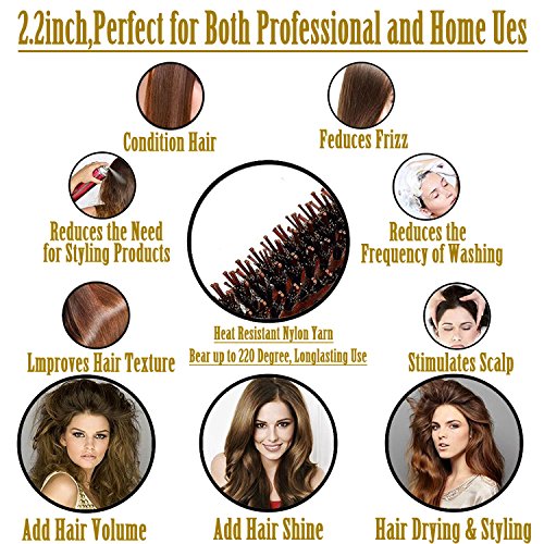 -. Binding : Misc. -. Brand : ALLMILL -. EAN : 0713752892303 -. Feature : ✓ECO-FRIENDLY MATERIALS: ALLMILL Wooden Hair Brush is crafted with smoothed out natural wood and natural boar bristles. Designed to provide years of enjoyable use, the hair brush is static-free and anti-microbial. Highly heat resistant. / ✓ERGONOMIC HANDLE: The ergonomic brush handle is made of a strong and durable natural wood that will last for many years. The polished natural wood handle provides the most comfort for the hand while styling. / ✓HEALTHY HAIR:Human scalp naturally produces oil called sebum which acts as a protector for hair. The boar bristles help to spread this sebum around to lubricate each of your hair strands which reduces frizz. / ✓SCALP MASSAGE: The brush provides subtle and relaxing scalp massage to relieve stress, increases blood circulations, and promotes healthy hair growth. / ✓VERSATILITY: The Hair Brush is ideal for all hair types including straight and curly hair. It is perfect for hair styling, untangling, and blow-drying. -. IsAdultProduct : 0 -. Label : ALLMILL -. Manufacturer : ALLMILL -. MPN : ALLMILL875621 -. PartNumber : ALLMILL875621 -. ProductGroup : Beauty -. ProductTypeName : BEAUTY -. Publisher : ALLMILL -. Studio : ALLMILL -. Title : ALLMILL Natural Boar Bristle Round Comb Hair Brush with Ergonomic Natural Wood Handle,2.2 Inch,Styling Essentials for Hair Drying, Styling, Curling -. UPC : 713752892303