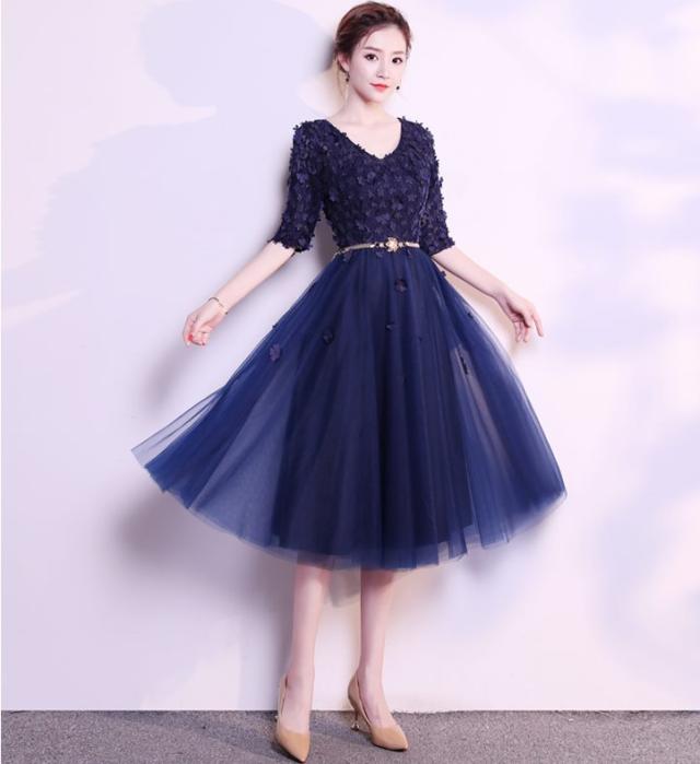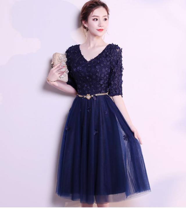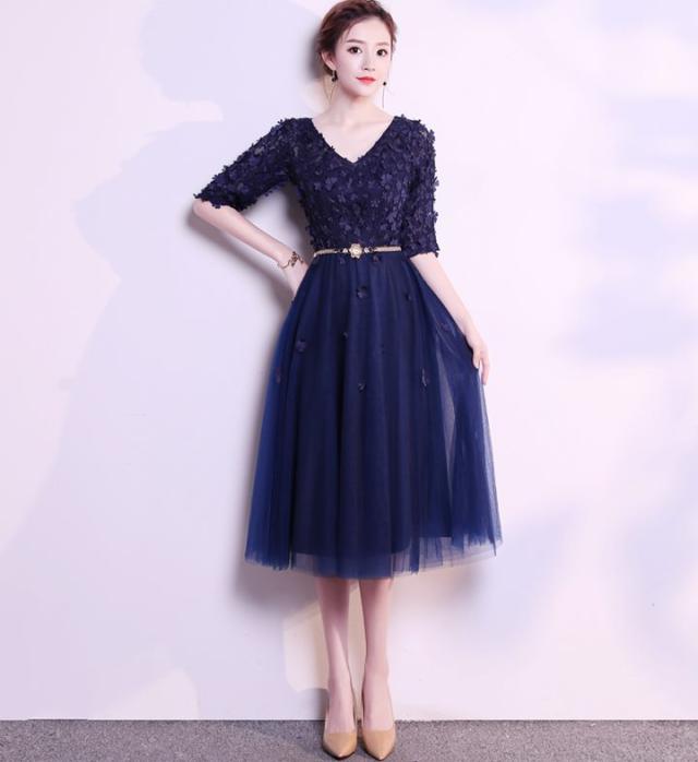 花びら チュール 膝下 Vネック 五分丈 パーティードレス 結婚式 二次会 披露宴 演奏会 コンサート 発表会 卒業式 謝恩会 女子会 パーティー デート お呼ばれ 親族 キャバ フォーマル 大きいサイズ スピンドル レースアップ 調節可能 着痩せ効果 足長効果 10代 20代 30代 2L 3L 4L 5L 韓国風