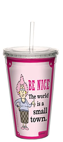 Tree-Free Greetings 16-Ounce Double-Walled Cool Cup with Reusable Straw, Aunty Acid Small Town World (CC98617)