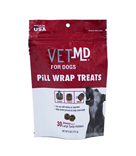 Giving dogs medicine can sometimes be a challenge. They may run the other way when they see you coming with the pill bottle or spit the pill out when you try to give it to them whole. These cheese flavored pill wrap treats are the perfect solution to trick your dog into taking the medication they need. Simply slip the tablet in the treat, pinch over, and give it to your dog just like you would a treat. To make it even better, the wrap has dental grooves that help clean the gum line and teeth while they chew. Directions: Feed as a treat to your pet. Ingredients: Rice flour, corn syrup, glycerin, cheese flavor, cornstarch, lecithin, dextrose, carrageenan gum, calcium propionate, sorbic acid, vitamin E powder, purified water, ascorbic acid, safflower oil,hickory flavor, artificial color. Safety Warnings: Keep out of reach of children and other pets to avoid unwanted consumption.Feature