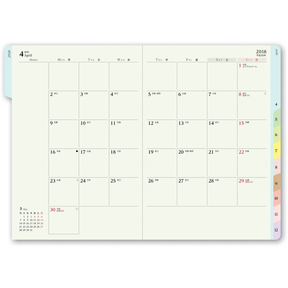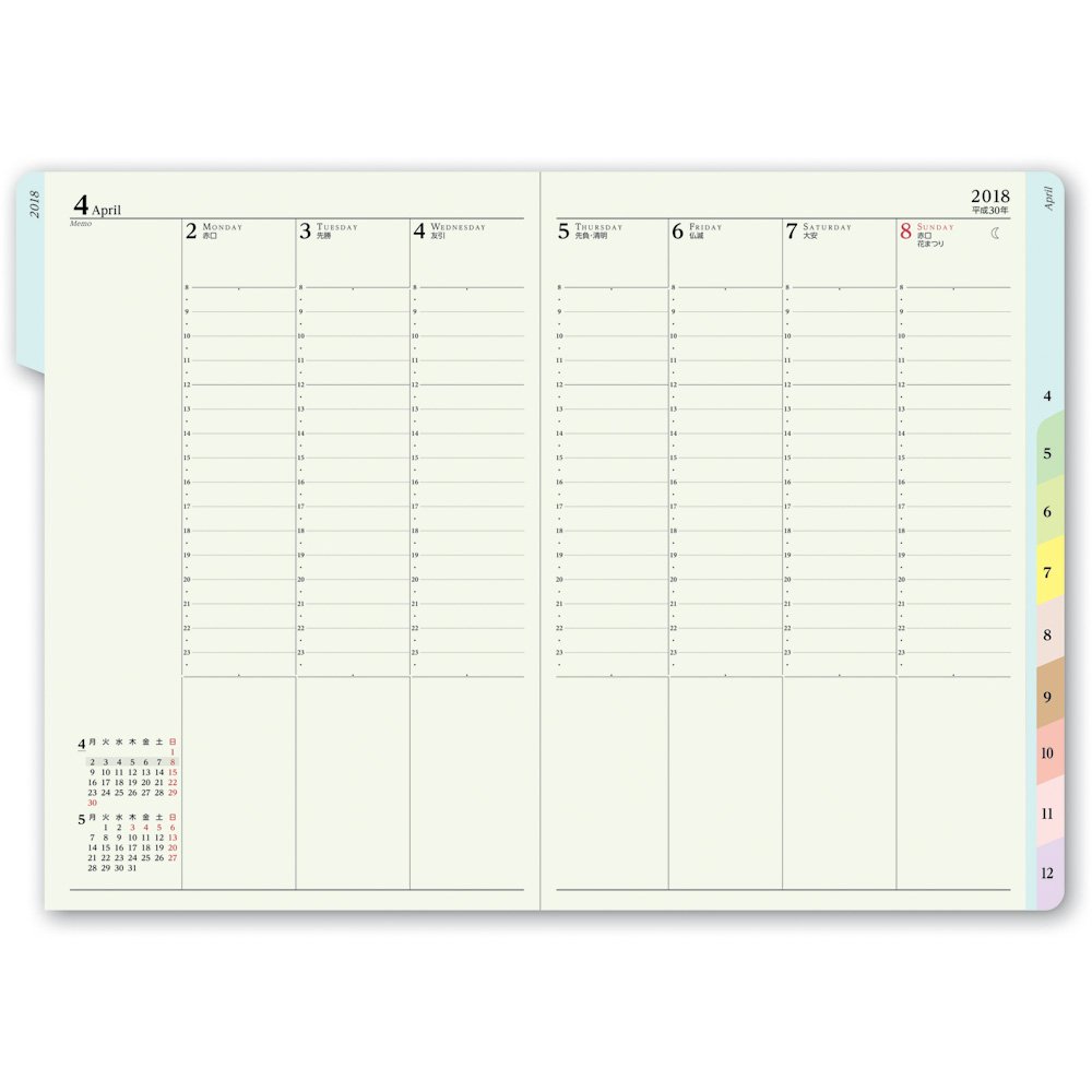 The index is color-coded every month, with steps, it is easy to open easily. Paper quality and thickness are just right, I like it without re-scratching the paper even if I rewrite the schedule with a ballpoint pen that disappears. I used this type last year. There are kinds of weekly parts, things on one side, things in facing, so I think that it is better to check when buying.