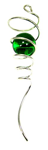 Shipityourway 11" Gazing Ball Spiral Tail Cyclone Wind Spinner Stabilizing Accessory Optical Illusion Yard Twister with String and Hook (Silver Wire, Green Glass Orb)