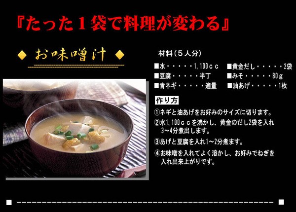 【商品名】たった一袋で料理が変わる【黄金のだし】30包入×2袋 (粉末)