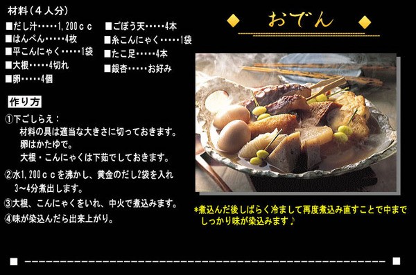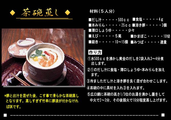 お味噌汁、おでん、茶碗蒸し、煮物等