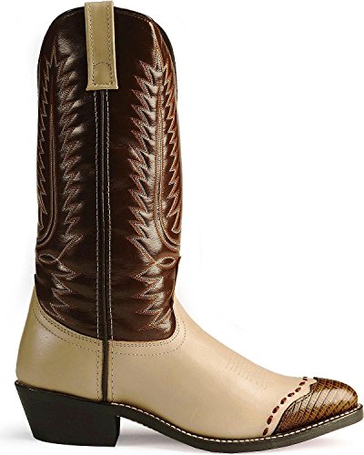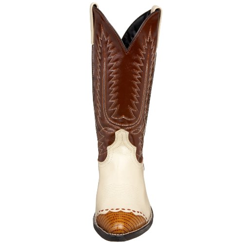 Amazon.com This boot from Laredo combines a Western shape with classic wingtip styling. The two-toned upper features intricate stitching and dual pull tabs that make it easy to put on. 0