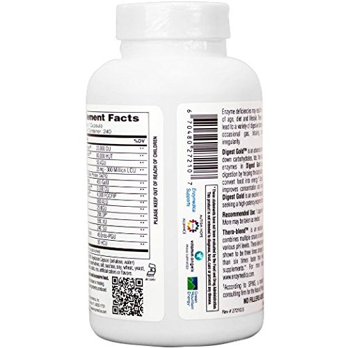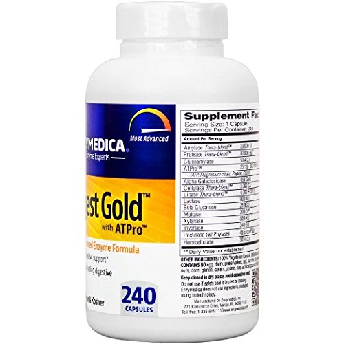 -. Binding : Health and Beauty -. Brand : Enzymedica -. EAN : 0670480272107 -. Feature : NEW FORMULA WITH ATP PRO - ATPro technology is a blend of critical nutrients that provide ATP and enhance ATP production. ATP is found in raw foods in an abundance and enables optimal energy production / # 1 SELLING ENZYME BRAND THAT AIDS AGAINST ENZYME DEFICIENCY - As we age, our bodies produce fewer of the enzymes that we need to function. Enzymedica uses an exclusive Thera-blend process to ensure all enzyme efficiency in all areas of the digestive tract and throughout the body / IMPROVES VITALITY AND COMFORT - Enzymedica's powerful metabolic enzymes helps takes stress off the gallbladder, liver and pancreas leaving you at ease. / CONTAINS THERA-BLEND - Thera-blend is an exclusive process that combines multiple strains of enzymes that work in various pH levels. Thera-blend enzymes have been shown to be three times stronger and work more than six times faster than leading digestive supplements. / PROMOTES REGULARITY - studies have shown that by supplementing your diet with the right combination of digestive enzymes may help improve regularity and overall digestive health. -. IsAdultProduct : 0 -. Label : EnzyMedica -. LegalDisclaimer : WARNING: Keep out of reach of childrenDo not use if safety seal is broken or missing. -. Manufacturer : EnzyMedica -. Model : 670480272107 -. MPN : 27210 -. NumberOfItems : 240 -. PackageQuantity : 1 -. PartNumber : 27210 -. ProductGroup : Health and Beauty -. ProductTypeName : HEALTH_PERSONAL_CARE -. Publisher : EnzyMedica -. Size : 240 capsules -. Studio : EnzyMedica -. Title : Enzymedica Digest Gold with ATPro -- 240 Capsules -. UPC : 670480272107