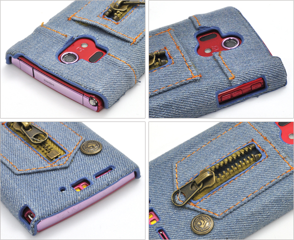 デニム素材を使用した、ARROWS X LTE F-05D用デニムデザインケース。