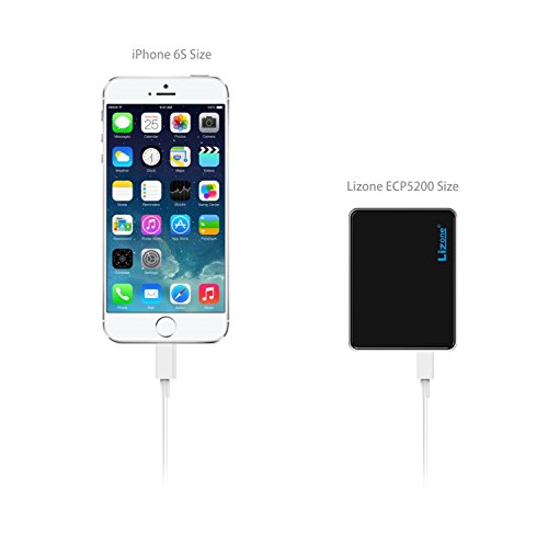 -. Binding : Wireless Phone Accessory -. Brand : Lizone -. Feature : Exclusive Lizone QC Technology: Detects your device to deliver its fastest possible charge speed up to 2.1 amps (four times faster than a computer USB port). / High Capacity: Add two charges to an iPhone 6 or 5s, at least one full charge to a 6 Plus, Galaxy S5, Note 4, Nexus 5 and other smartphones, or even an 80% charge to an iPad mini. / Incredibly Compact: The size of a small candy bar (2.8 × 2.1 × 0.8 inch, 4.2oz ) it fits perfectly in your pocket. Recharges in around 5 hours with a 1A adapter (not included) and the included Micro USB cable. / The Lizone Advantage: Join the 5 million+ powered by our leading technology. LCD Displays Remaining Capacity with Precision, Built-in LED flashlight. Compatible with Apple and Android smartphones, tablets (including the Nexus 7) and other USB-charged devices except for the iPod nano, iPod Classic and some GPS and Bluetooth devices / Package Contents : Lizone ECP5200 Portable Charger External Battery Power Bank, Micro USB Cable, Instruction Manual, our fan-favorite 18-month warranty and friendly customer service. -. Label : Lizone-us.com -. Manufacturer : Lizone-us.com -. MPN : 7073960011 -. PackageQuantity : 1 -. PartNumber : 7073960011 -. ProductGroup : Wireless -. ProductTypeName : WIRELESS_ACCESSORY -. Publisher : Lizone-us.com -. Studio : Lizone-us.com -. Title : Lizone® 5200mAh Mini Portable Charger and External Battery Power Bank with QC for iPhone 6 6S Plus 5S 5C 5 4S, iPad, Samsung Galaxy S6 S5 S4 Note, Nexus, HTC, Motorola, Nokia, PS Vita, Gopro and more