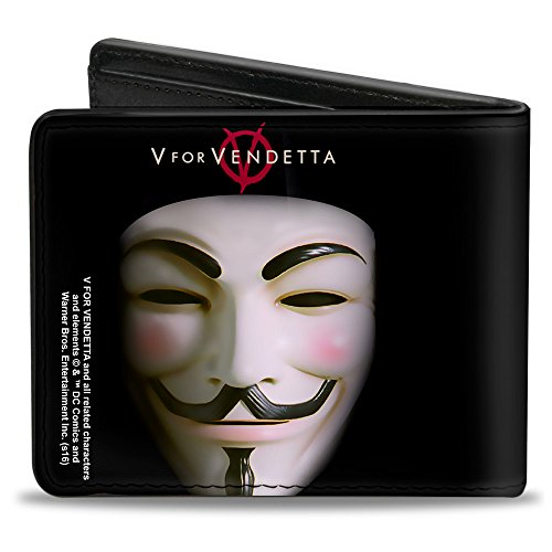 -. Feature : This awesome men's bi-fold wallet is made from premium vegan leather. / It measures 4.0x3.5x0.5 Inches, and features the standard billfold, 5 card slots, and windowed ID holder. / The logos are applied using advanced P.R.Inting technologies, so the wallet will still look good after years of hard use. / The gorgeous artwork is applied using the latest P.R.Inting technology, so it will hold up well over time. / This product is Officially Licensed by Vendetta