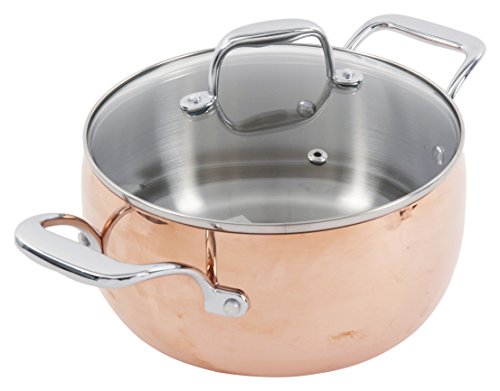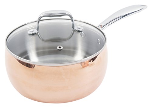 Gorgeous mirror polished stainless steel and copper colored cookware with thick encapsulated base and tempered glass lids for monitoring the cooking process. Suitable for all stovetops including induction. Non-Stick interior creates easy cleaning and effortless food release. No need to hand wash! Let your dishwasher do the dirty work!