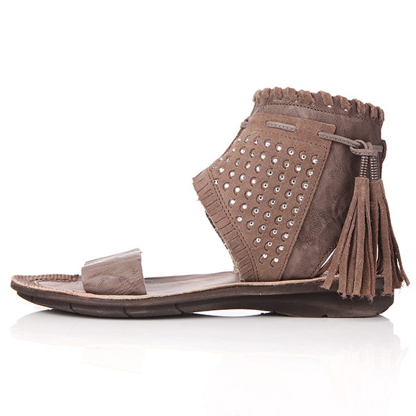 스톤과 태슬 장식이 특징적인 샌들입니다