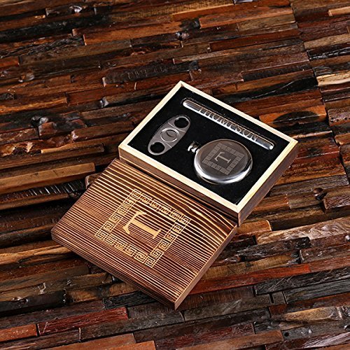 -. Brand : The Giftsmith -. Feature : Round Hip Flask With Cigar Holder And Cutter Set In Engraved Gift Box / Flask: stainless steel 150ml (5oz); Box 23 x 16 x 6.3 cm (8.75 x 6.25 x 2.5 in); Stainless steel case holds up to churchill size. / To send your lettering or design request: Complete Purchase then go to Your Orders and Ask Question or Ask Seller -. IsAdultProduct : 0 -. Label : Distinctive Goods -. Manufacturer : Distinctive Goods -. MPN : 025T579Engraved -. PartNumber : 025T579Engraved -. ProductGroup : Guild Product -. ProductTypeName : GUILD_HOME -. Publisher : Distinctive Goods -. Studio : Distinctive Goods -. Title : Personalized Hip Flask with Cigar Holder and Cutter with Engraved Wooden Gift Box - Great Gift for Men, Groomsmen, Father's Day
