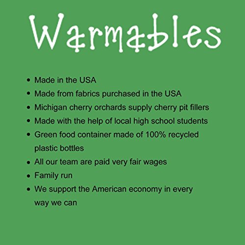 Studio : Warmables Publisher : Warmables Binding : Health and Beauty Product Description This simple cotton terry cloth square is filled with over a pound of pits. It takes chills off any body part and warms up cold beds. The 9x9 cushion stays warm for up to one hour if used under covers. Use it with a dab of lavender oil for baby's sleepy time or release stress by adding eucalyptus oil. Great to ease cramps, tension and discomfort. 0