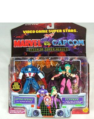 -. Feature : Captain America vs. Morrigan! / Cap includes Clip on Shield! / Morrigna Includes Clip on Bat and Wing Attack Action! / Video game ama and stand included!