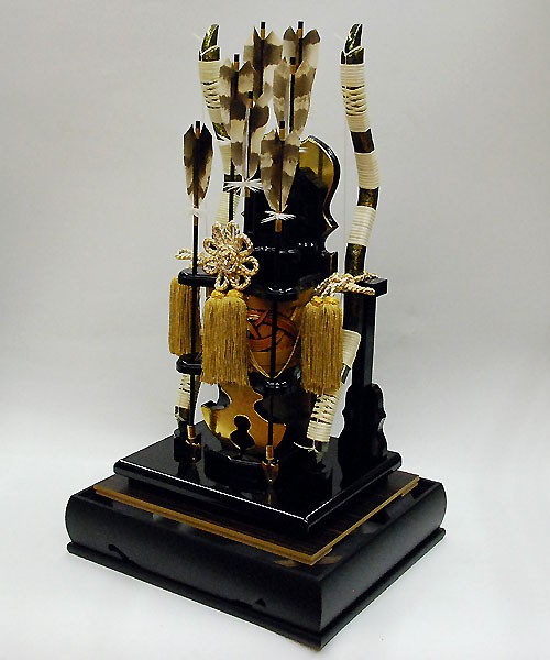 破魔弓 間口33×奥行28×高さ61cm 破魔弓(破魔矢)の通販販売店。初正月の破魔弓購入の選び方に迷われたら,弊社にお任せ下さい。本格破魔弓。高級材の黒檀ケースを使用した、ワンランク上の破魔弓飾り。