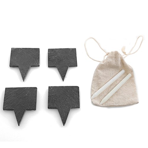 - Feature : Set of 4 erasable chalkboard labels made of black slate. / Each label features a pointed end that can be stuck directly into cheese, meats, or other solid food item. / Perfect for labeling cheese wheels and other similar food items when serving guests at a dinner party or restaurant. / **Official MyGift® product includes 4 signs, drawstring pouch, and 2 chalk pencils. Chalkboard NOT intended for use with liquid chalk markers.** / Approximate Dimensions (in inches, each sign): 2 W X 2.75 H X 0.25 D.