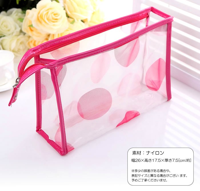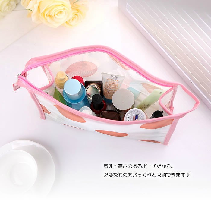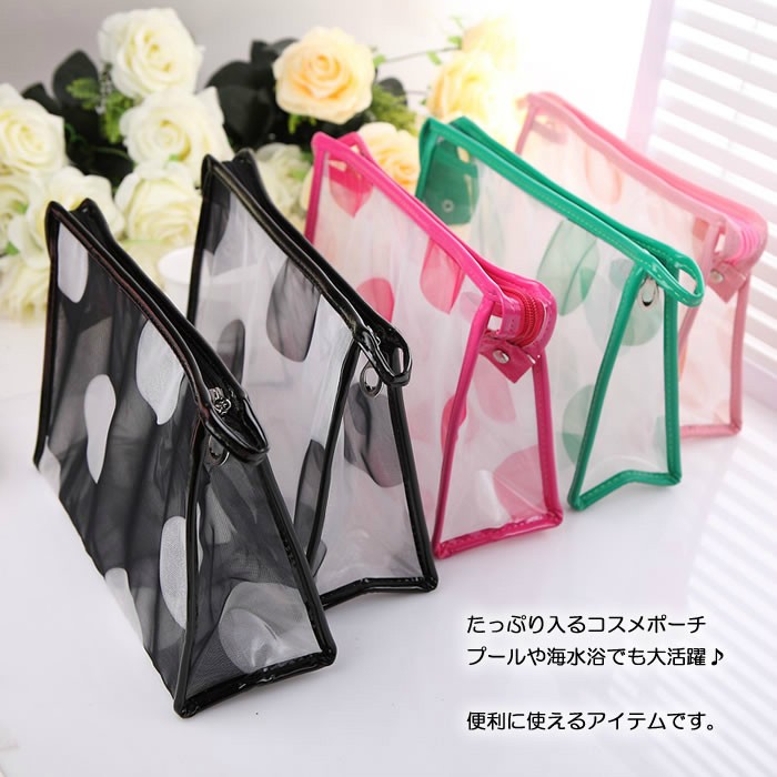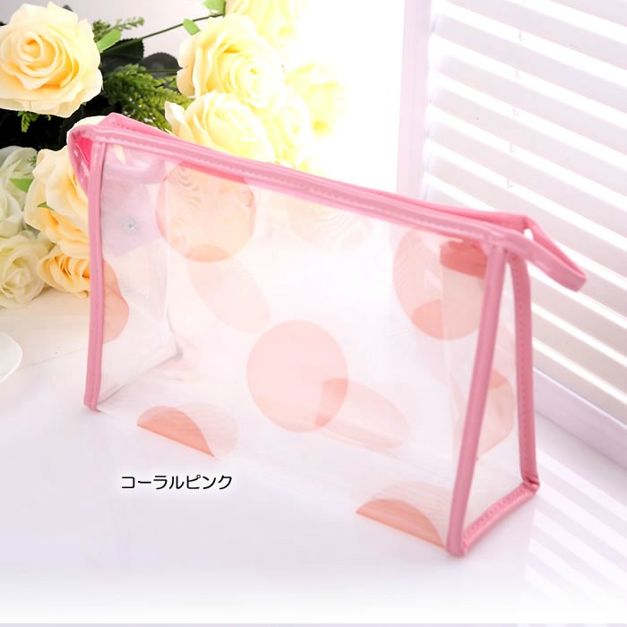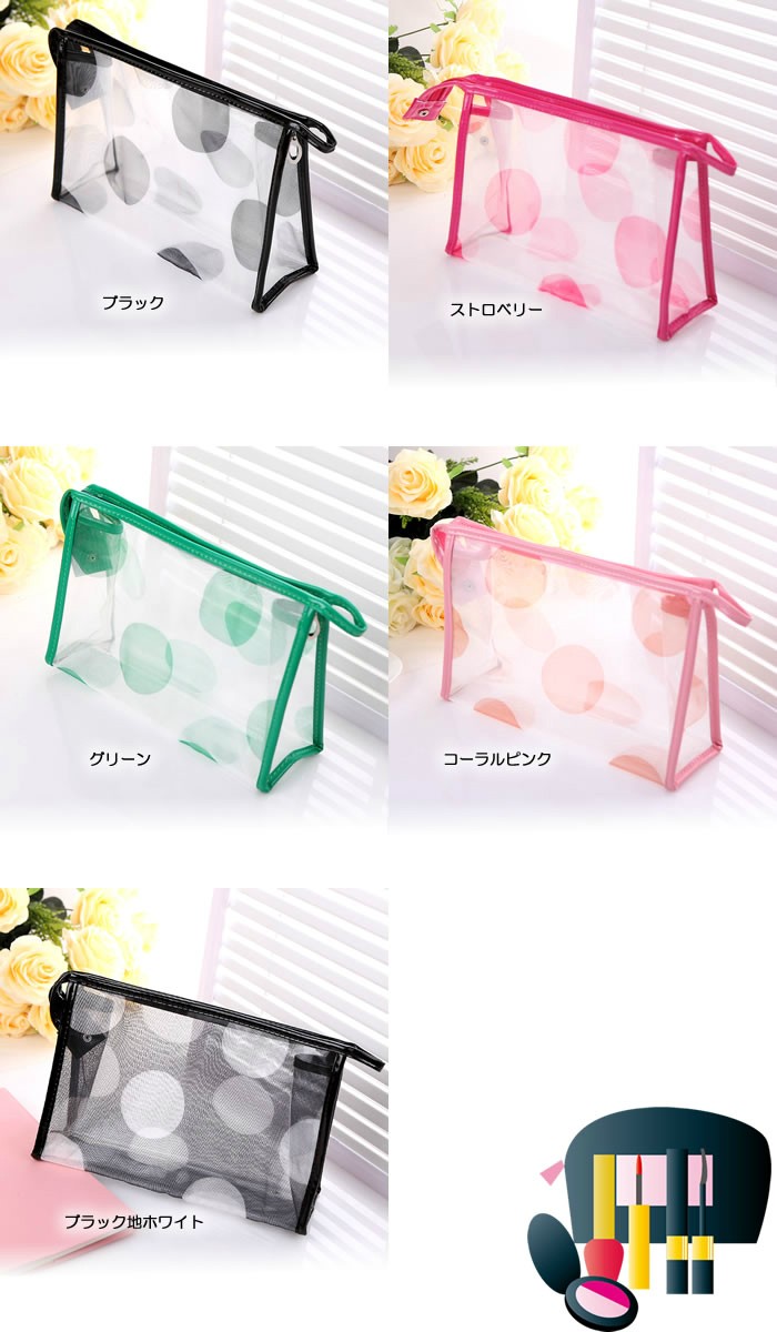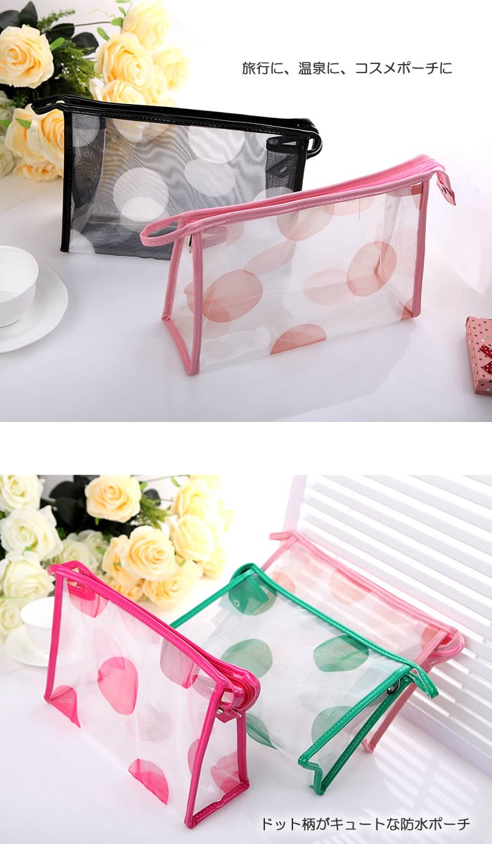 たっぷり収納♪ドット柄防水ポーチ 5色