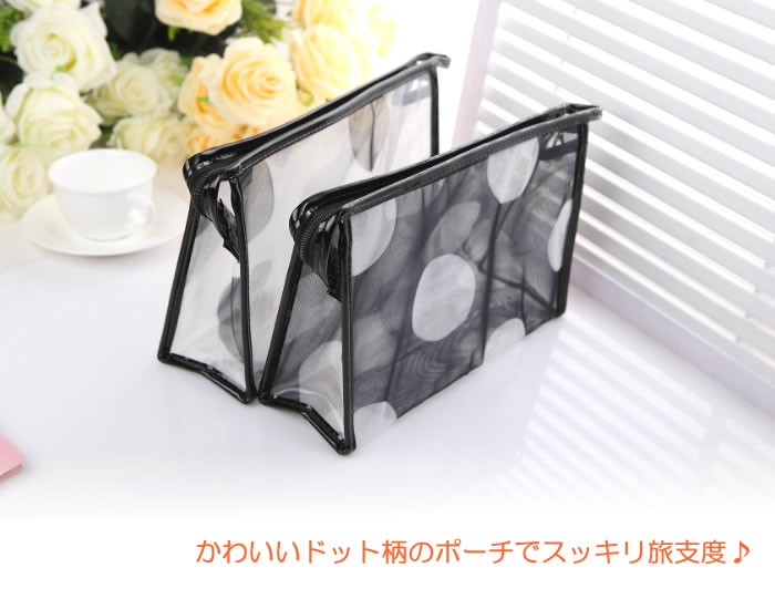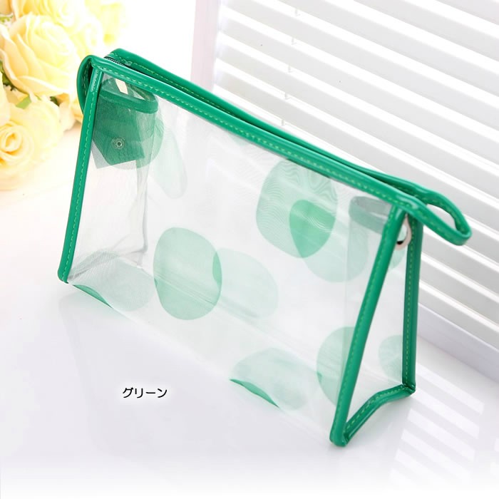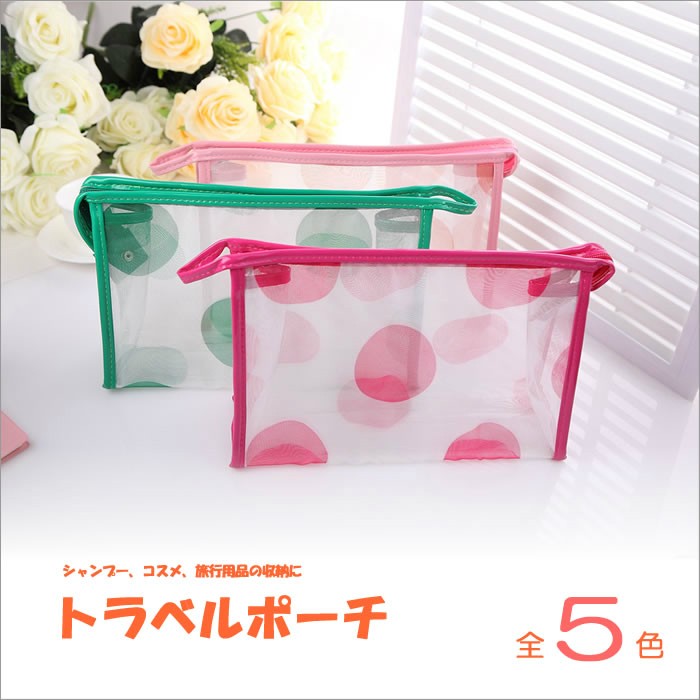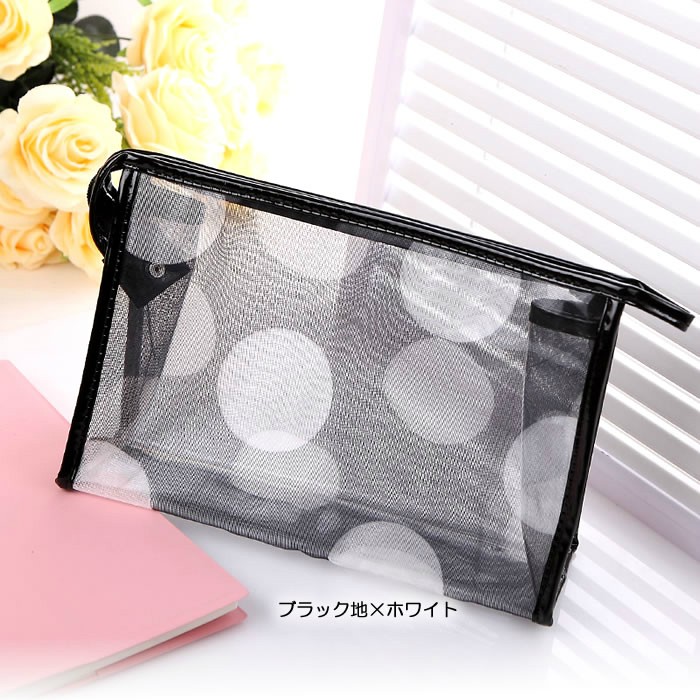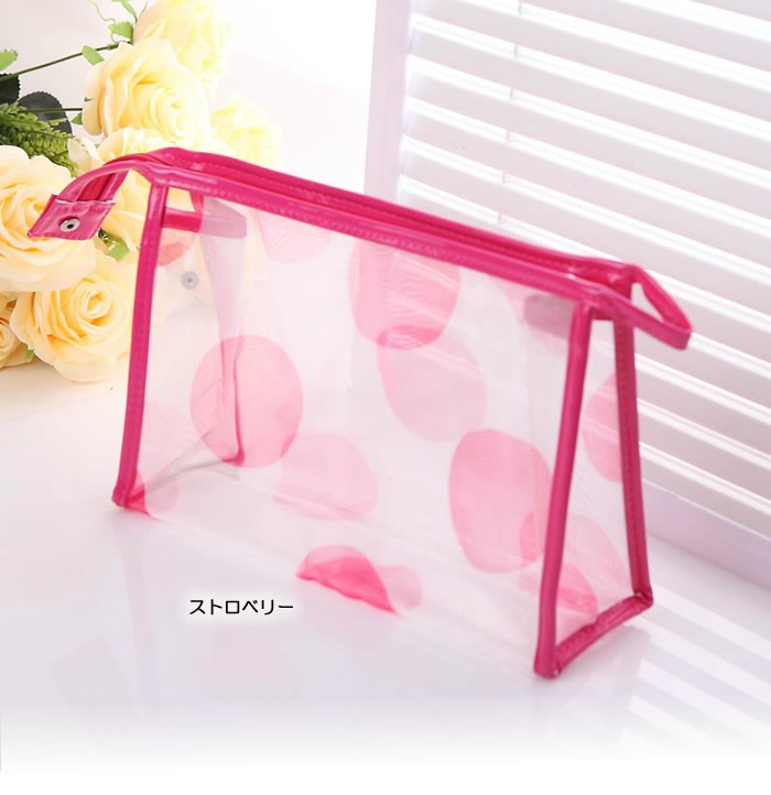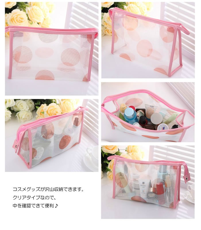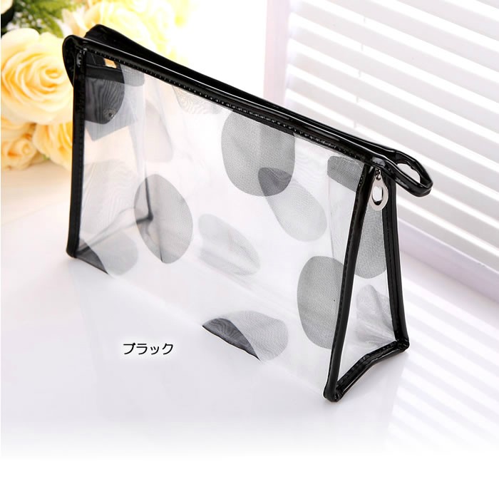 たっぷり収納♪ドット柄防水ポーチ 5色
