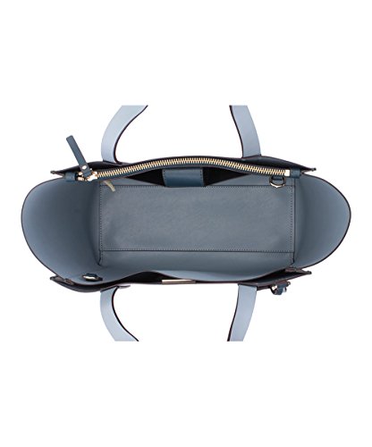 Measurements: 13"x9"x5" 9'' handle drop 23'' max. strap drop Leather. no lining Interior: one zip pocket, Slip pocket. 2 large side pockets. Removable and adjustable strap Imported. COLOR Emerald Lake