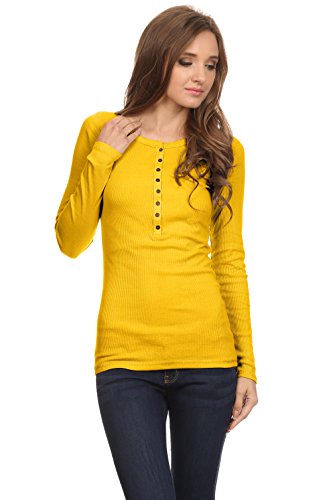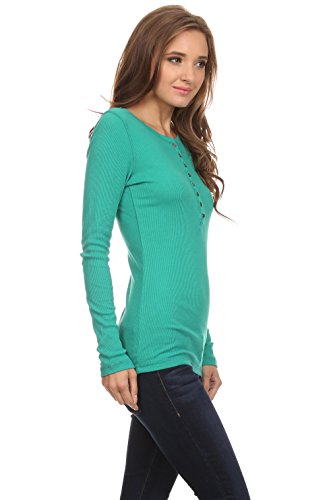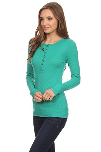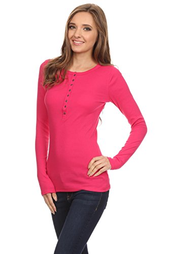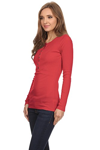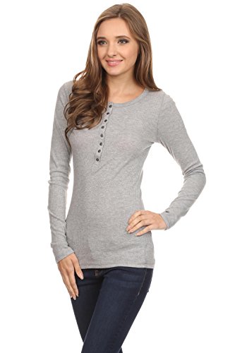 -. Feature : BEST CLASSIC HENLEYS FOR WOMEN - Enjoy the long sleeve henley shirt women for everyday casual wear. This junior henley is a classic! Composed of 60% cotton, 40% polyester. Length of the top: S-26 1/2", M-27", L-271/2". / SIZING - The henley tops for women run small. The sizing is juniors' sizing. Please order accordingly. These tops boast soft and lightweight material for all day comfortable wear. The fabric is thin with a ribbed texture. / COLOR VARIETY - Our long sleeve tops for women offer a variety of colors to choose, from the basic black t shirt women to many more colors. The henley top has metal buttons which adds detail and style. / YOUR SATISFACTION IS OUR PRIORITY - We love our customers and want them to love us too. We are confident you will love the women long sleeve t shirt, if you're not completely satisfied simply let us know and we will ensure you're absolute happiness! / A BASIC MUST HAVE - This long sleeve henley women is a basic closet staple for any casual occasion. You can wear the long sleeve t shirt women alone or as a layering top. It is also the ideal juniors long sleeve tops.