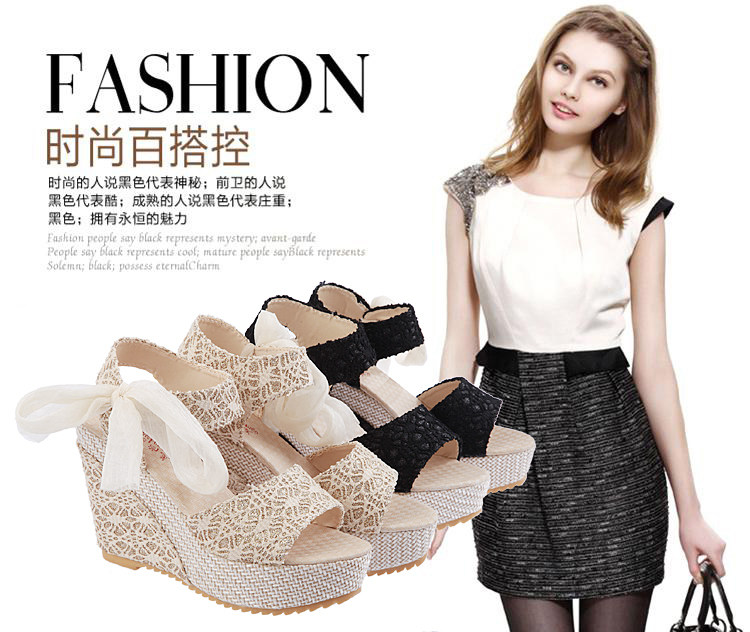夏季新款凉鞋坡跟鞋简约鱼嘴鞋防水台高跟鞋夏天甜美松糕女鞋
