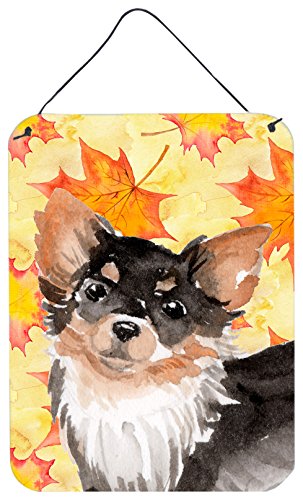 Caroline's Treasures Long Haired Chihuahua Fall Metal Print, 16" x 12", Multicolor