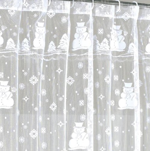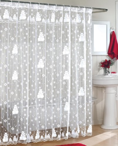 Snowman Lace Fabric Shower Curtain 70Wx72L-WHITE