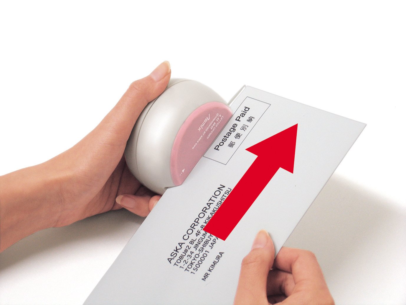 ● When you insert an envelope, the switch turns on automatically and the rotary blade carries it, so you can easily open it with your hands