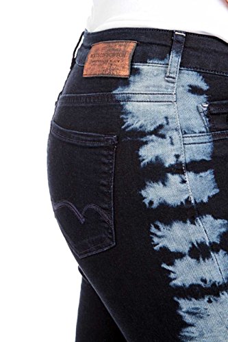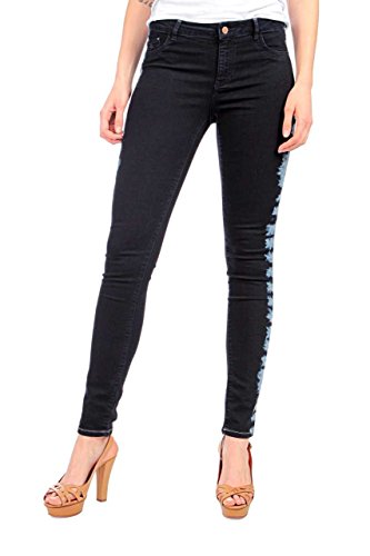 Normal sitzender Bund. Schmales Bein (Slim Jeans), aussergewohnlich schone Waschung mit imitierten Farbflecken. Super schmale Passform - sitzt perfekt.