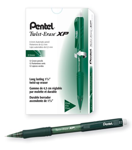 Pentel Twist Erase EXPRESS Automatic Pencil, 0.5mm Lead Size, Green Barrel, Box of 12 (QE415D)