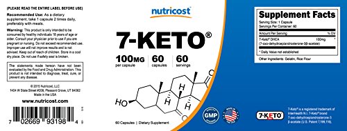 100mg of Premium 7-Keto Per Capsule 60 Capsules Per Bottle Take Control Of your Weight Made in the USA Brand : Nutricost MPN(PartNumber) : ZL00518 EAN : 0702669931984 Package Dimensions(LxWxH) : 11x6x6cm ; 68 g