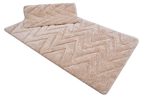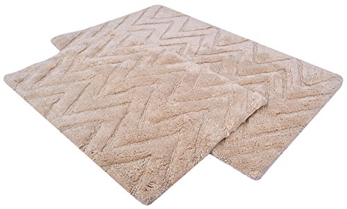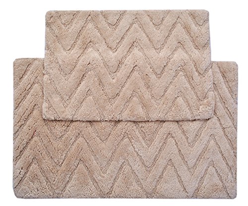 Value Homezz ( 2 Piece Bathmat Set ) Chevron 100% Cotton Tufted Accent Bath Rugs Size 21 x 34 / 17 x 24 Non Skid High Absorbency & Durable Machine washable Bath Mat (Beige)